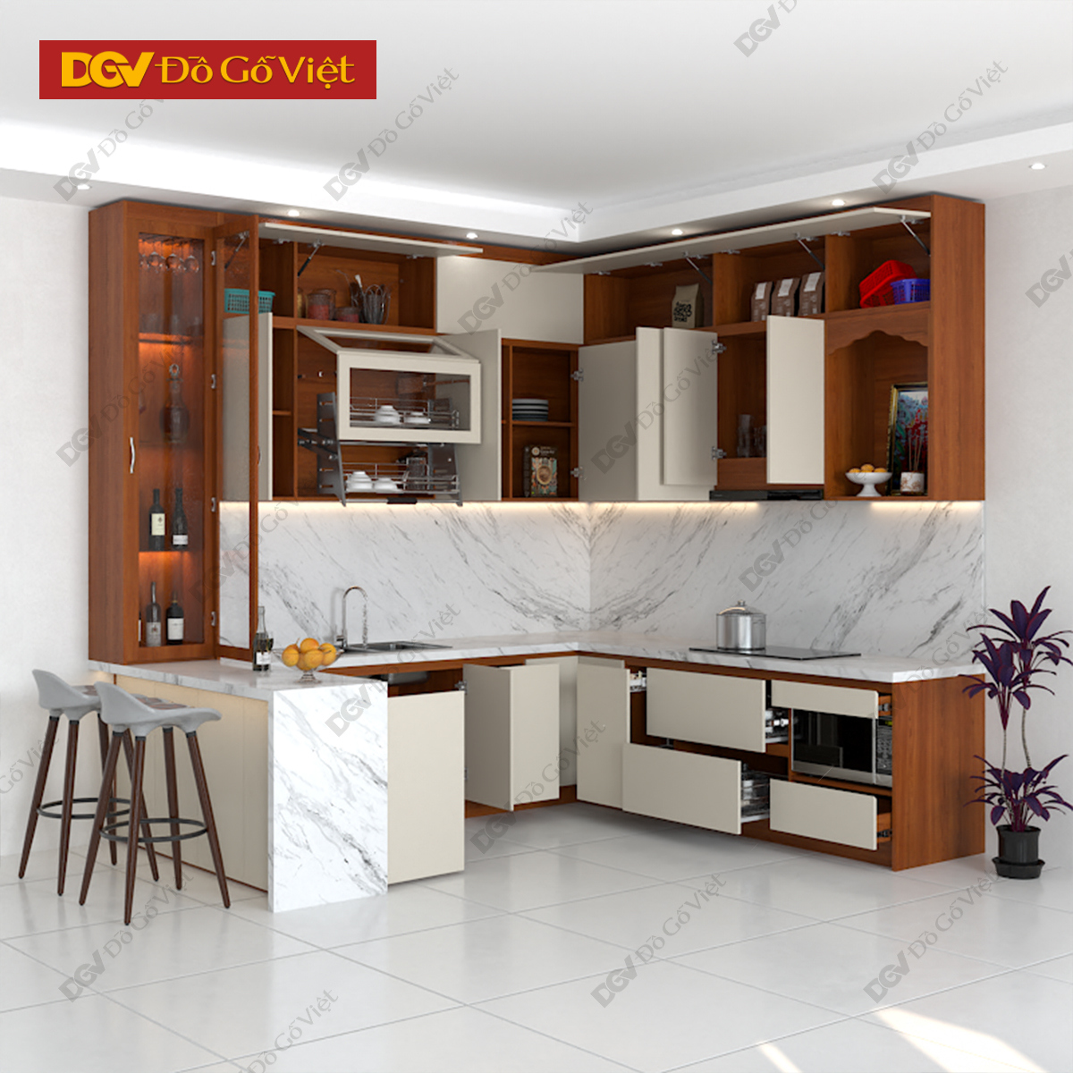 Tủ Bếp Gỗ Công Nghiệp Chữ L Nhiều Ngăn Tiện Dụng