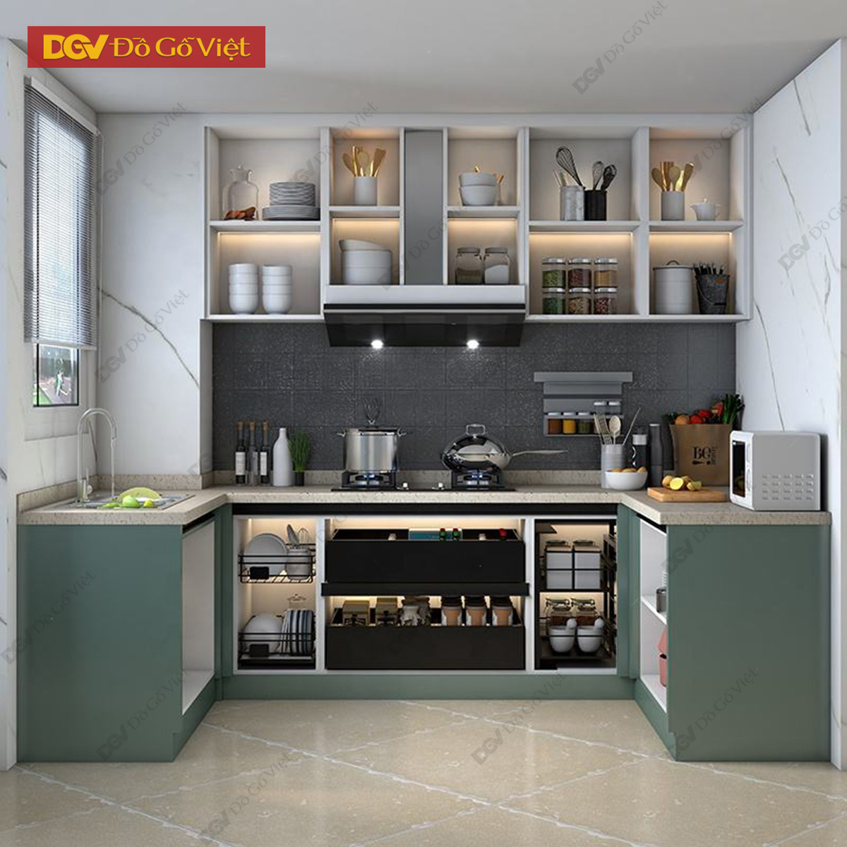 Tủ Bếp Gỗ Công Nghiệp Chữ L Nhiều Ngăn Tiện Dụng