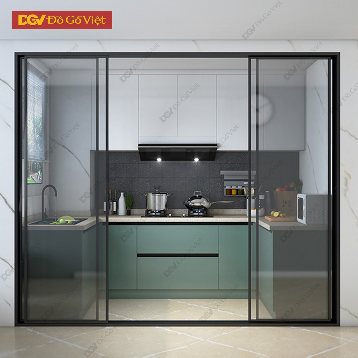 Tủ Bếp Chữ I Màu Xanh Phối Cánh Trắng Hiện Đại