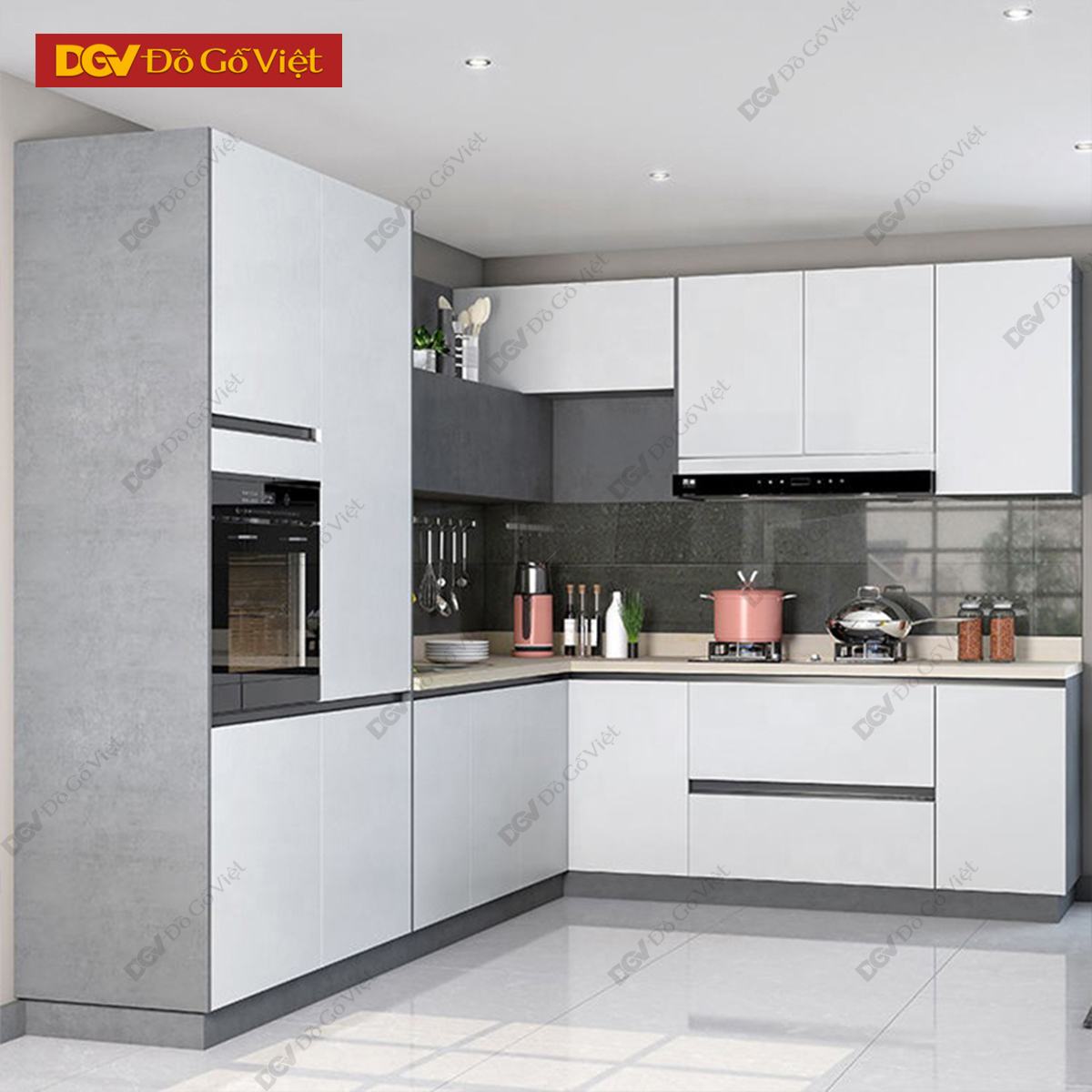 Tủ Bếp Gỗ Công Nghiệp Màu Trắng Phối Xám Đẹp