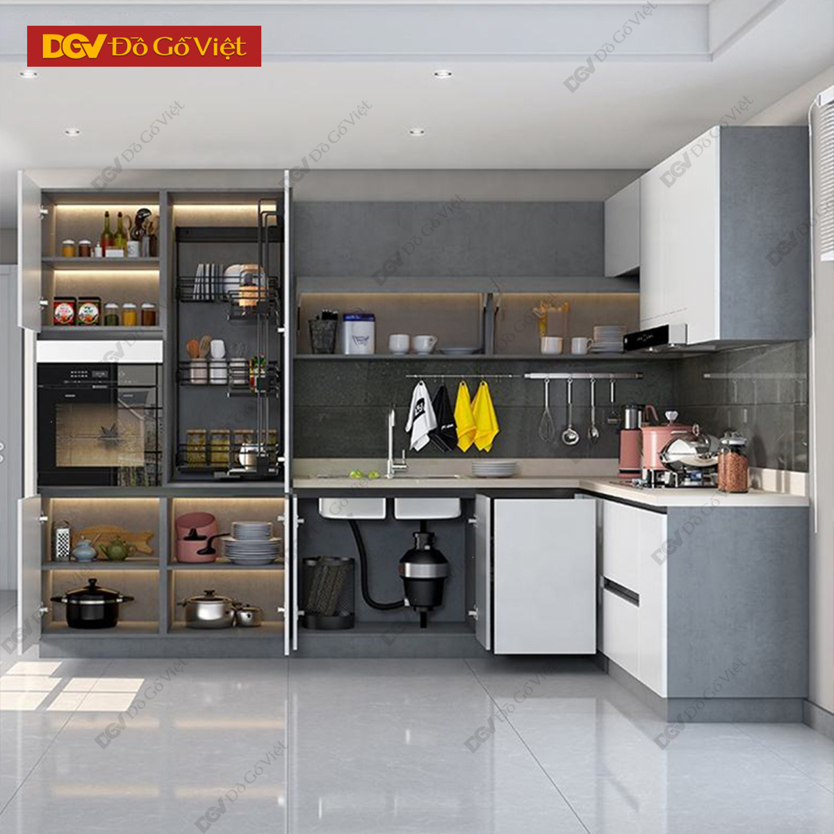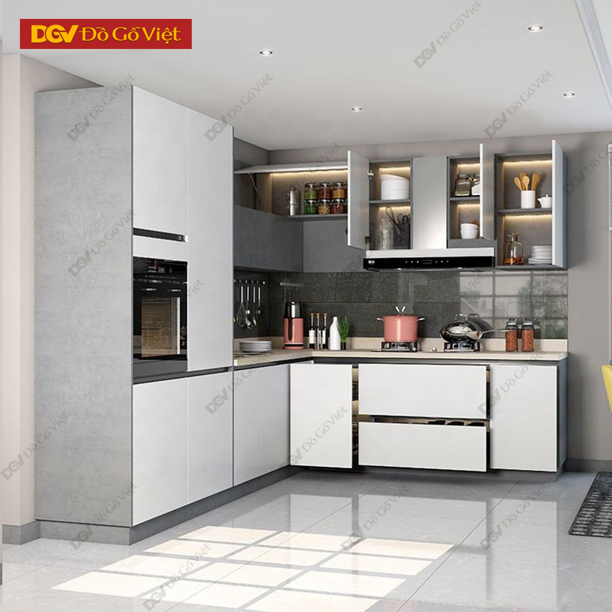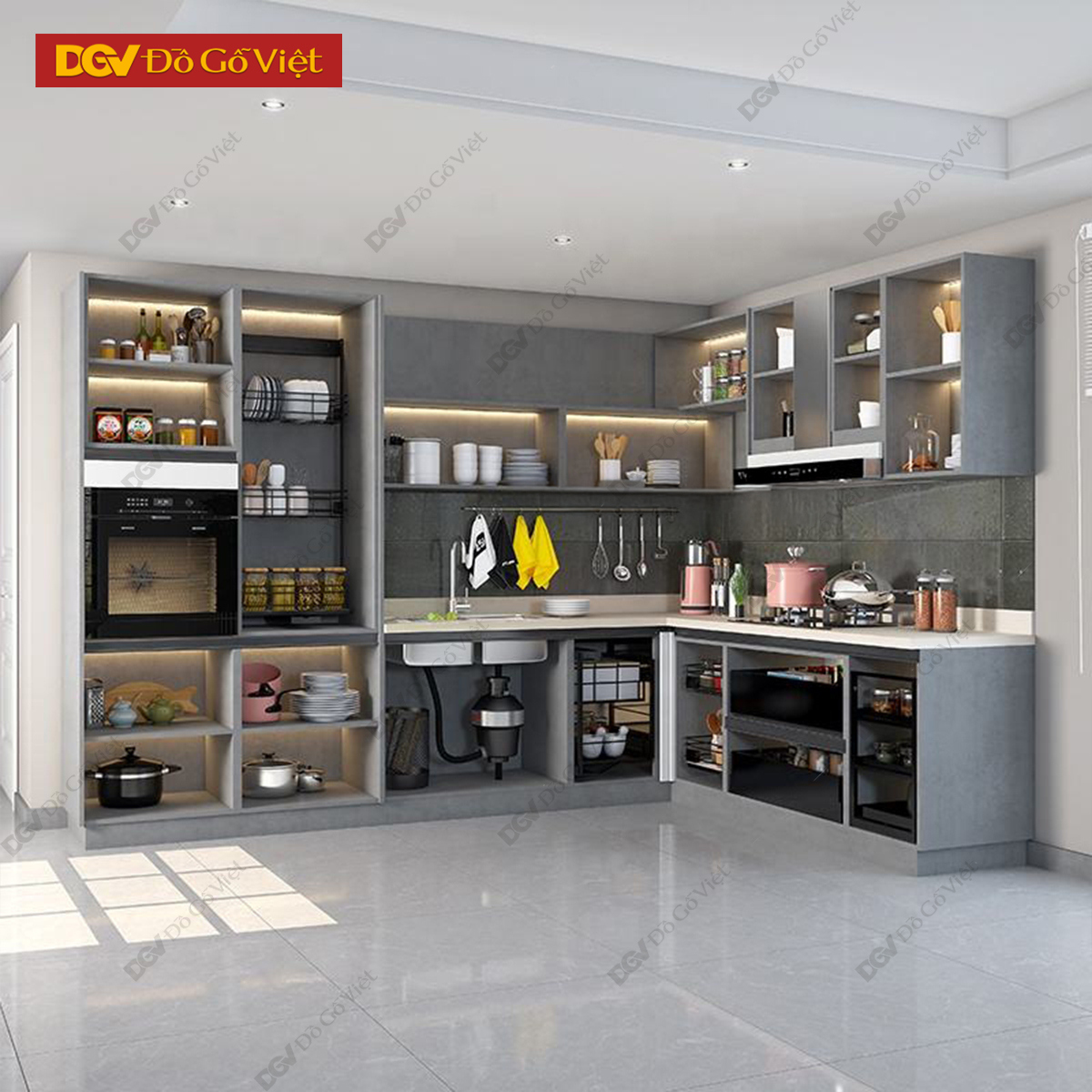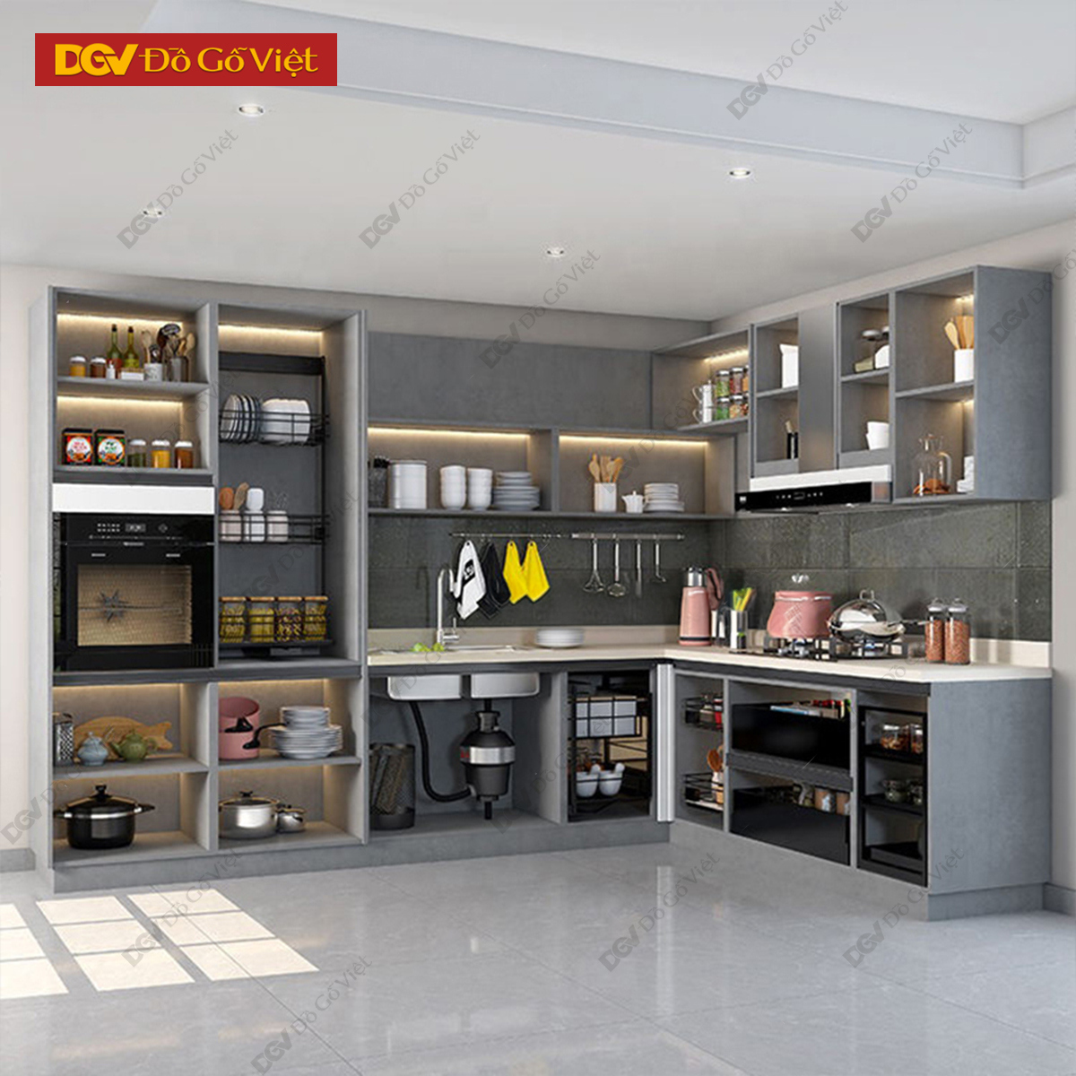 Tủ Bếp Gỗ Công Nghiệp Chữ L Nhiều Ngăn Tiện Dụng