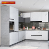 Tủ Bếp Công Nghiệp Chữ U Hiện Đại Màu Xám Vân Nhạt