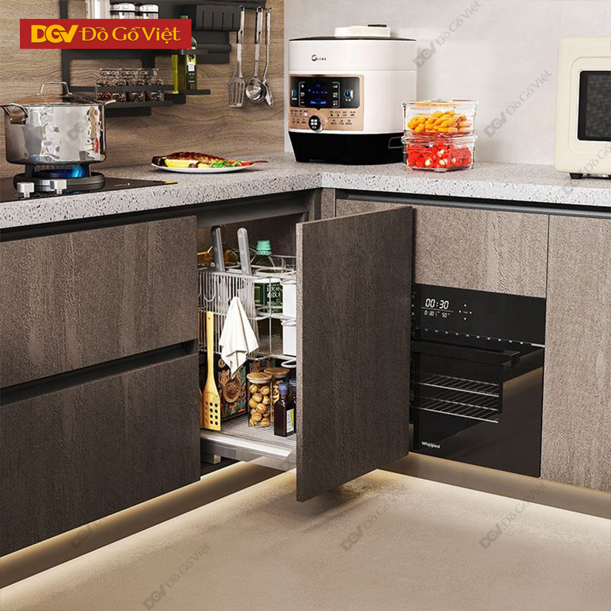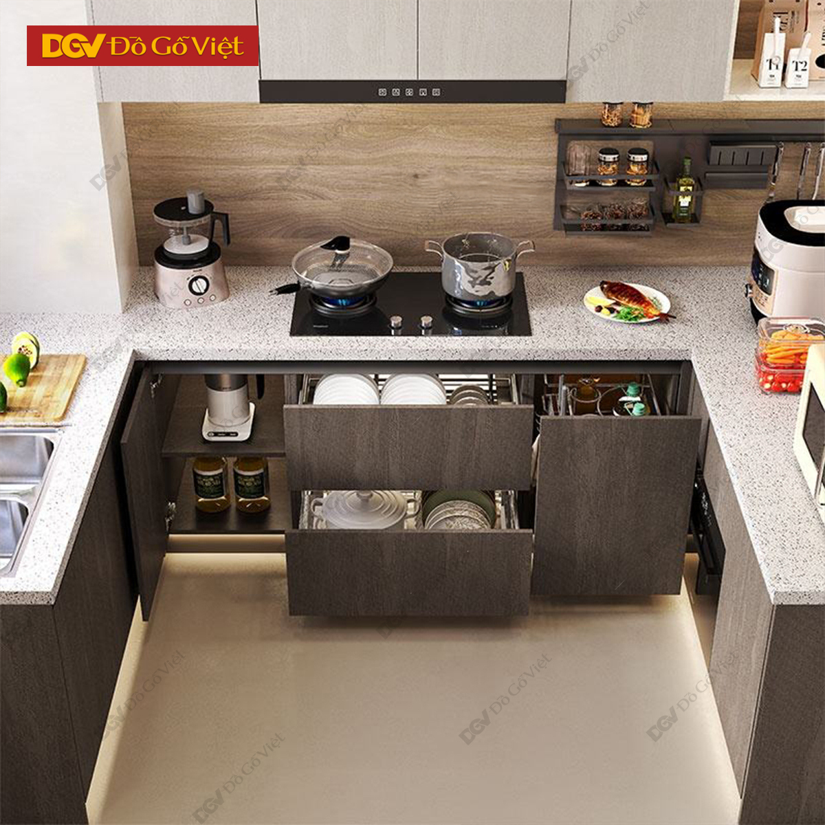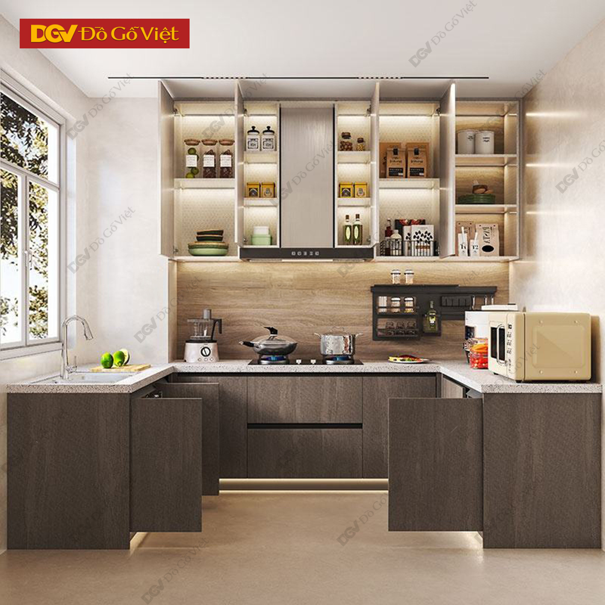 Tủ Bếp Gỗ Công Nghiệp Chữ L Nhiều Ngăn Tiện Dụng