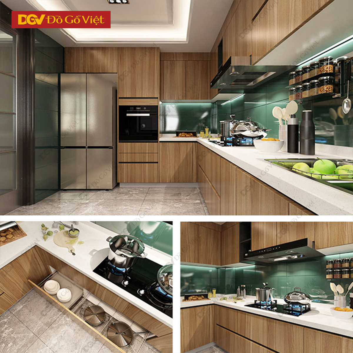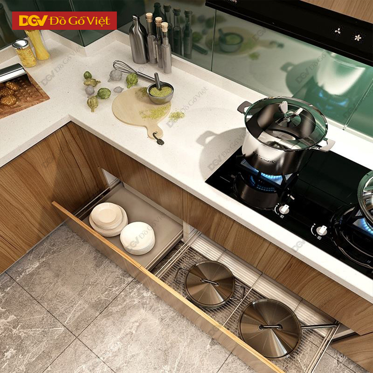 Tủ Bếp Gỗ Công Nghiệp Chữ L Nhiều Ngăn Tiện Dụng
