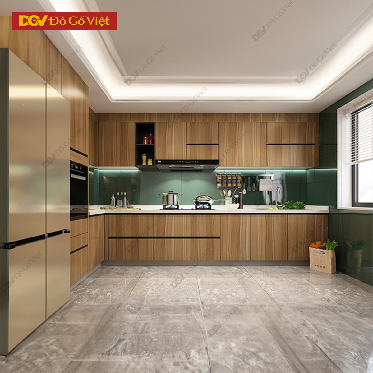 Tủ Bếp Gỗ Hiện Đại Kiểu Góc L Vân Gỗ Mộc Đẹp