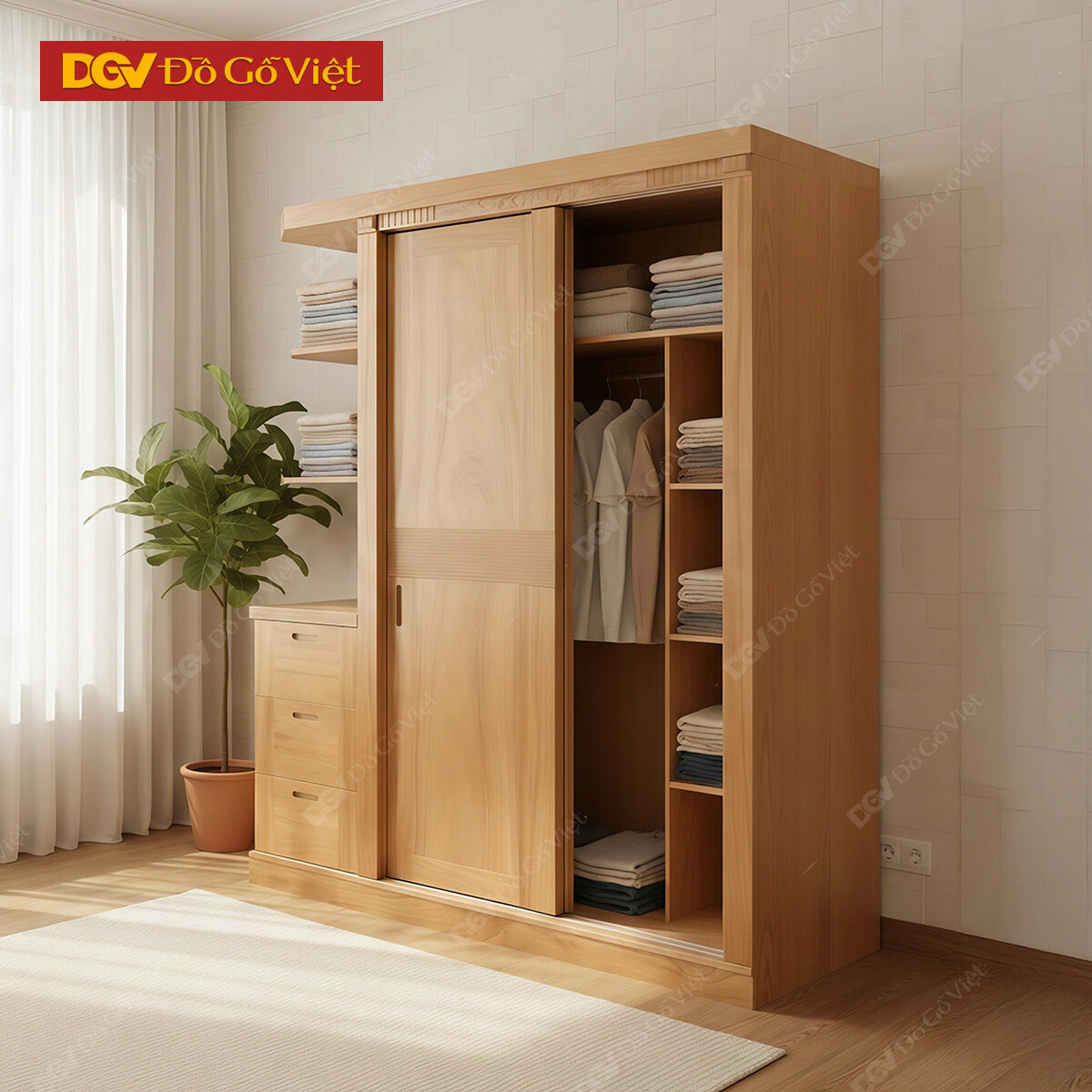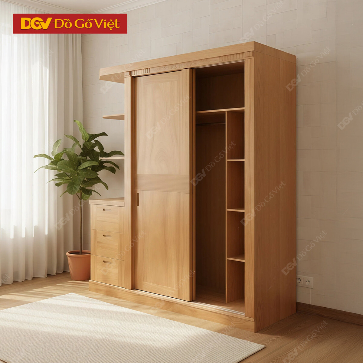 Tủ Cửa Lùa Gỗ Đinh Hương Kèm Kệ Góc Trang Trí Đa Năng