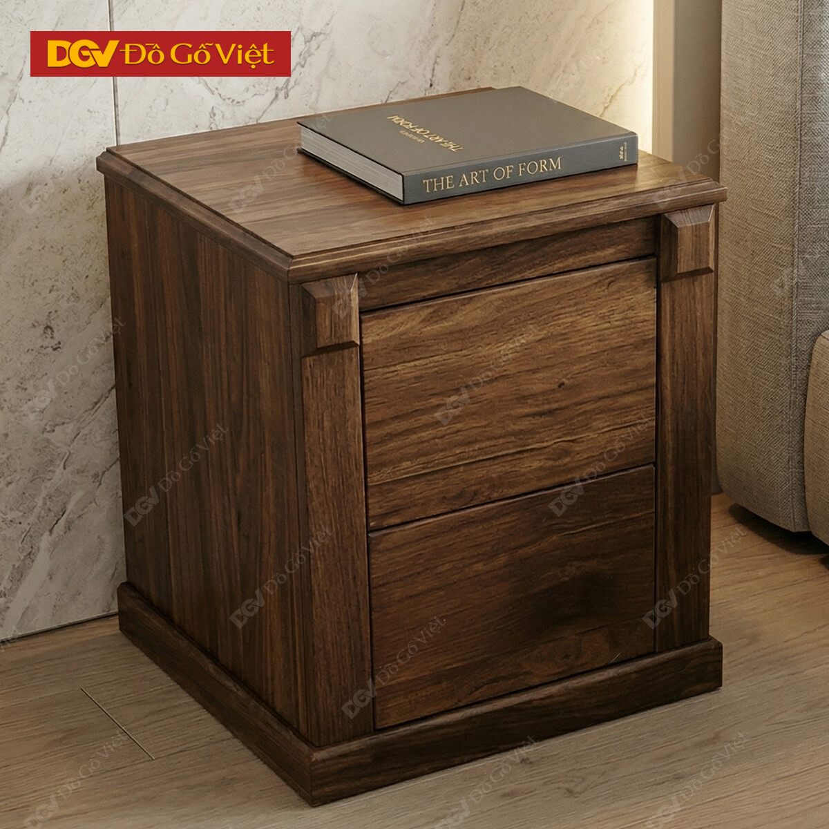 Tủ Đầu Giường Cho Phòng Ngủ Gỗ Veneer Óc Chó Chân Bệt Giá Rẻ