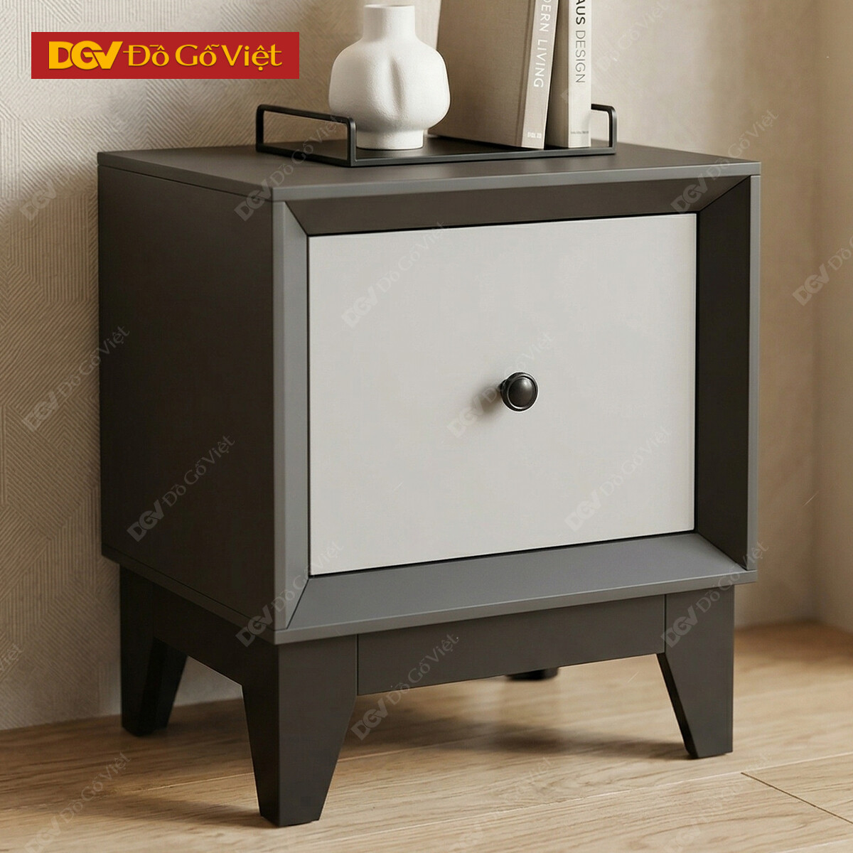 Tủ Đầu Giường Hiện Đại Gỗ MDF Phối Ngăn Kéo Cánh Xám