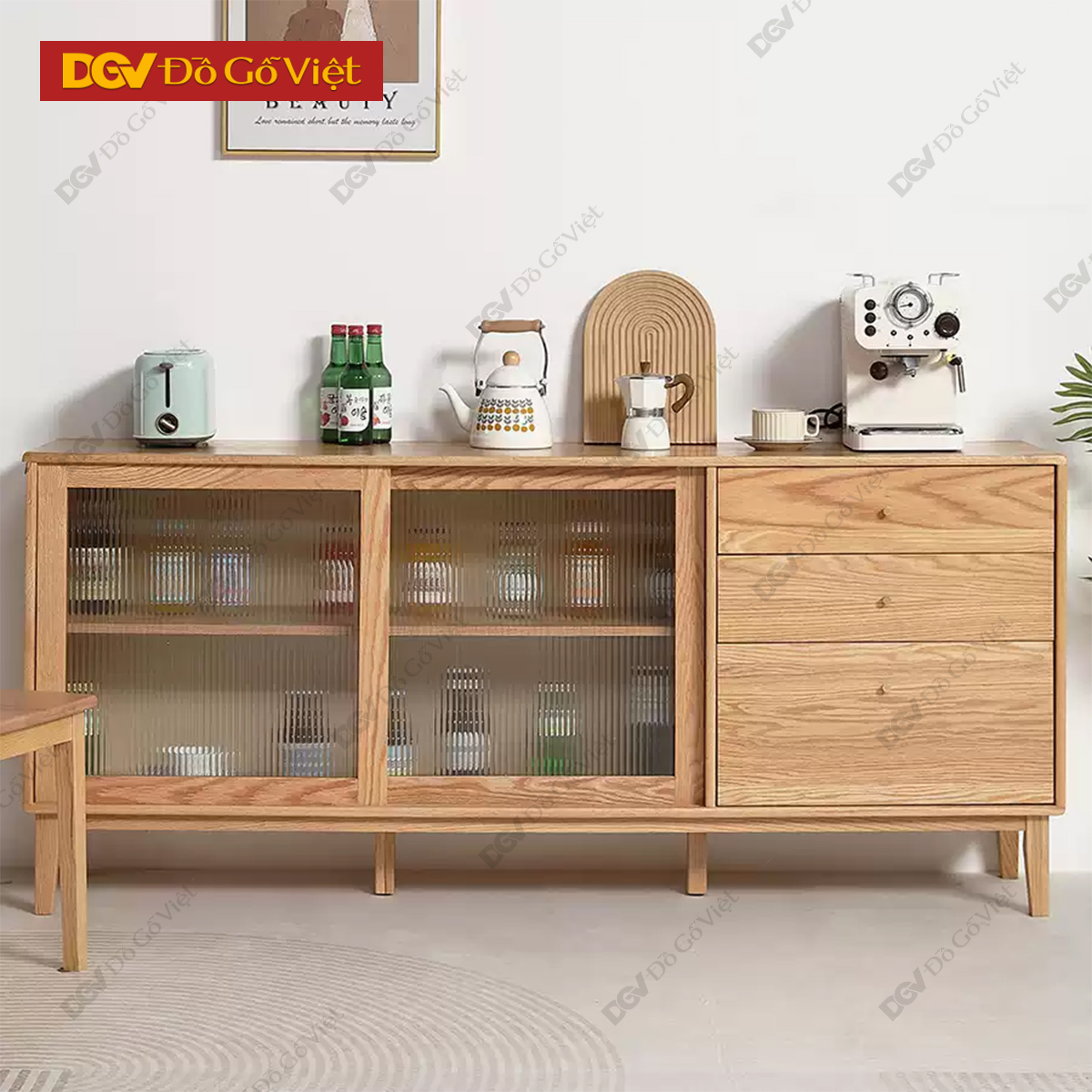 Tủ Để Dụng Cụ Nhà Bếp Gỗ Sồi Cánh Kính Kèm Ngăn Kéo Tiện Lợi
