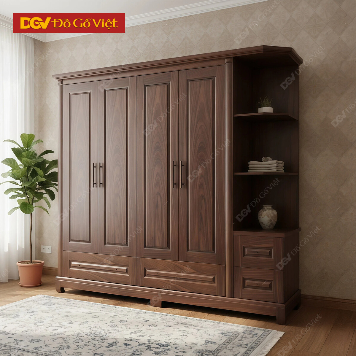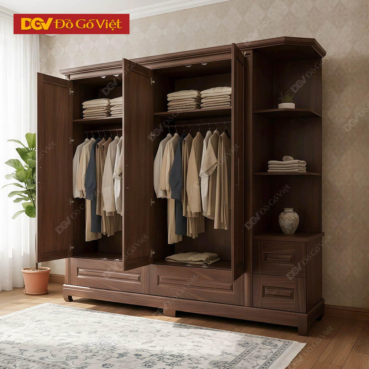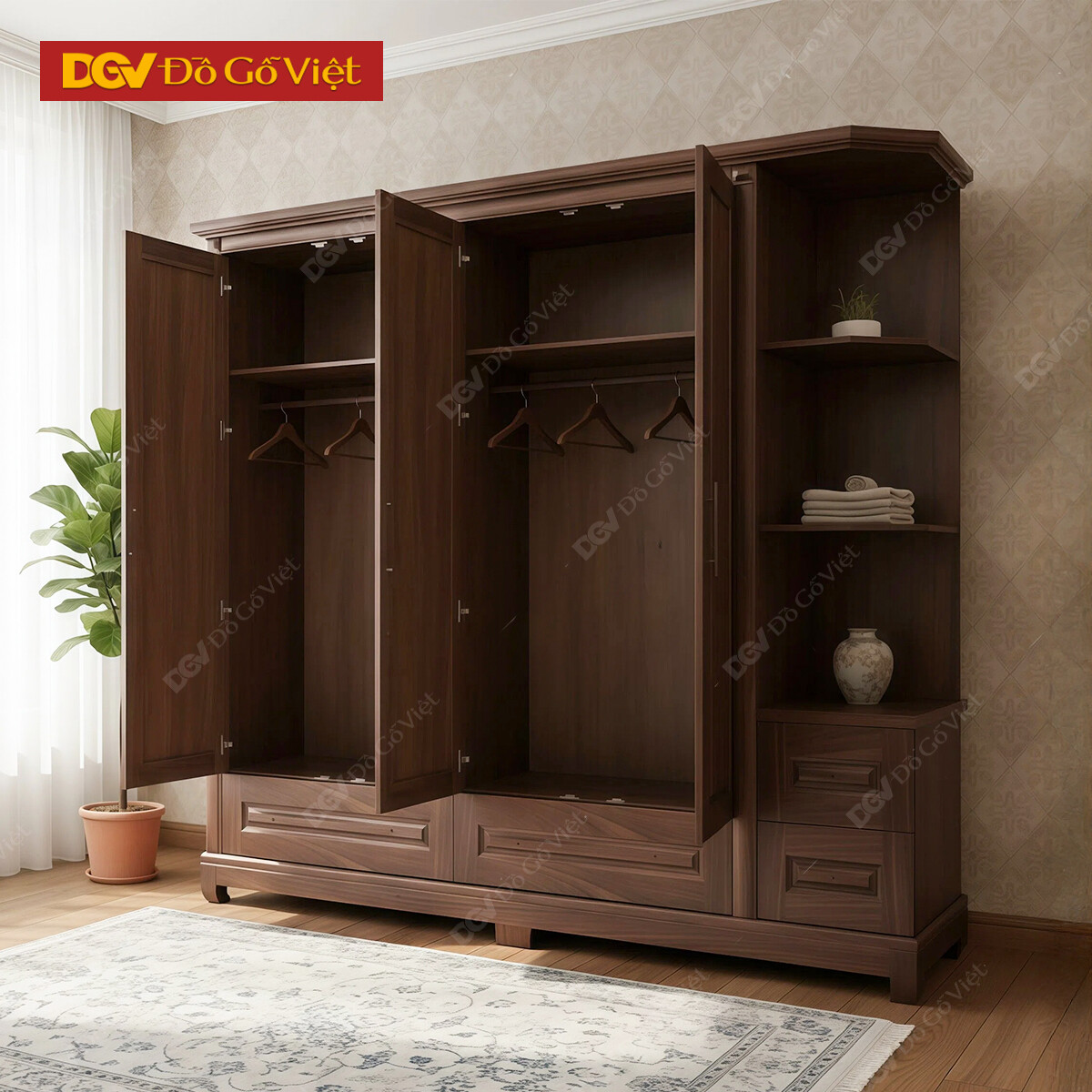 Tủ Áo Gỗ Óc Chó 4 Cánh Kèm Nóc Và Ngăn Kéo Tiện Dụng
