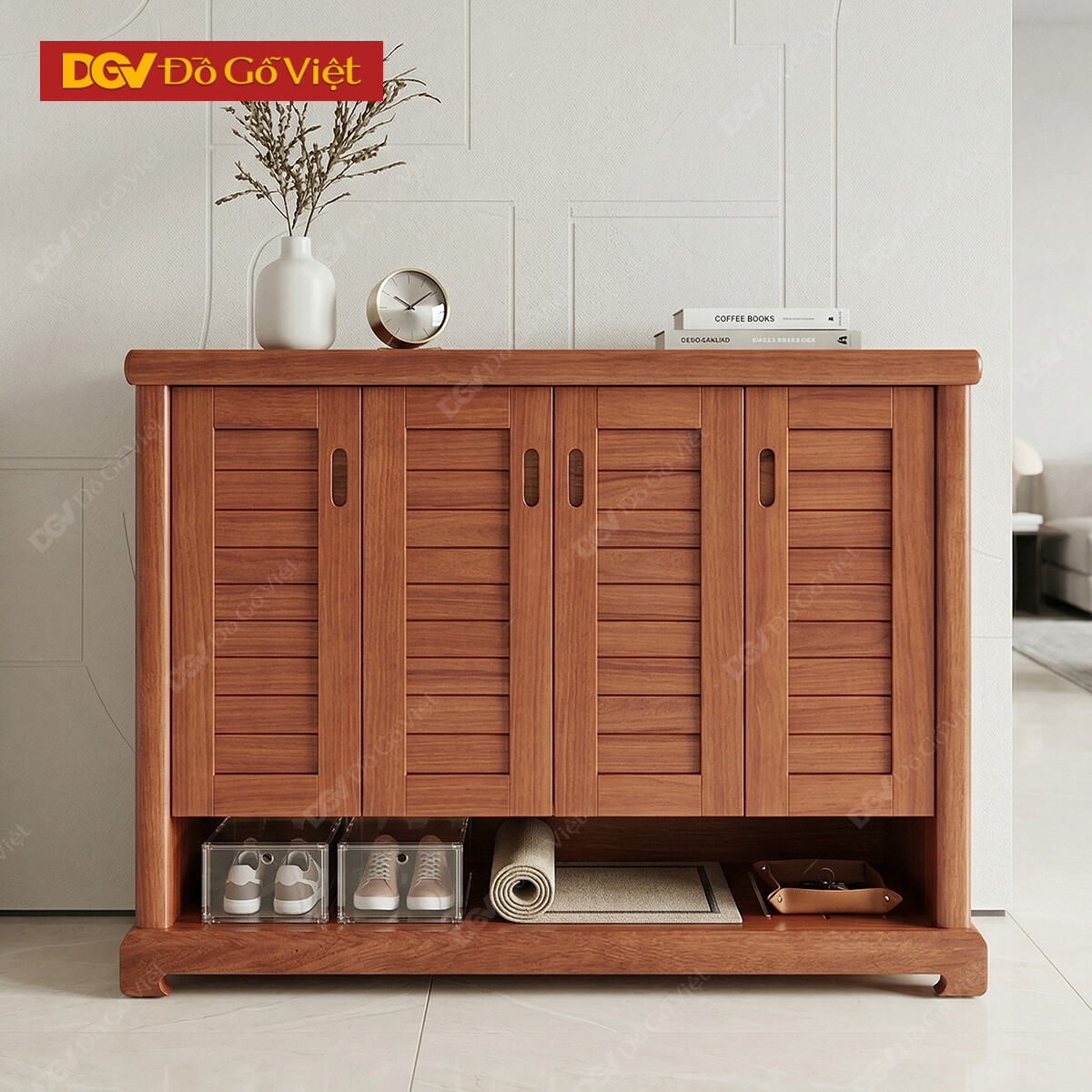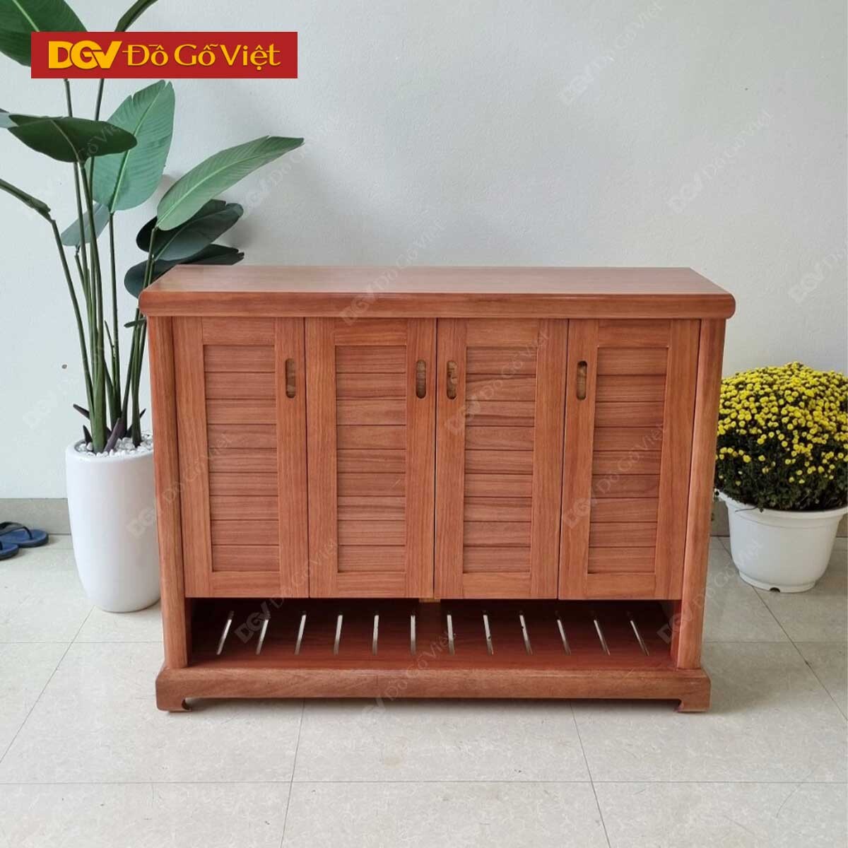 Tủ Giày Dép Gỗ Xoan Đào 4 Cánh Nan Chân Cao Tiện Ích