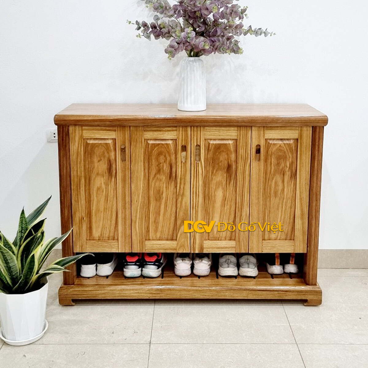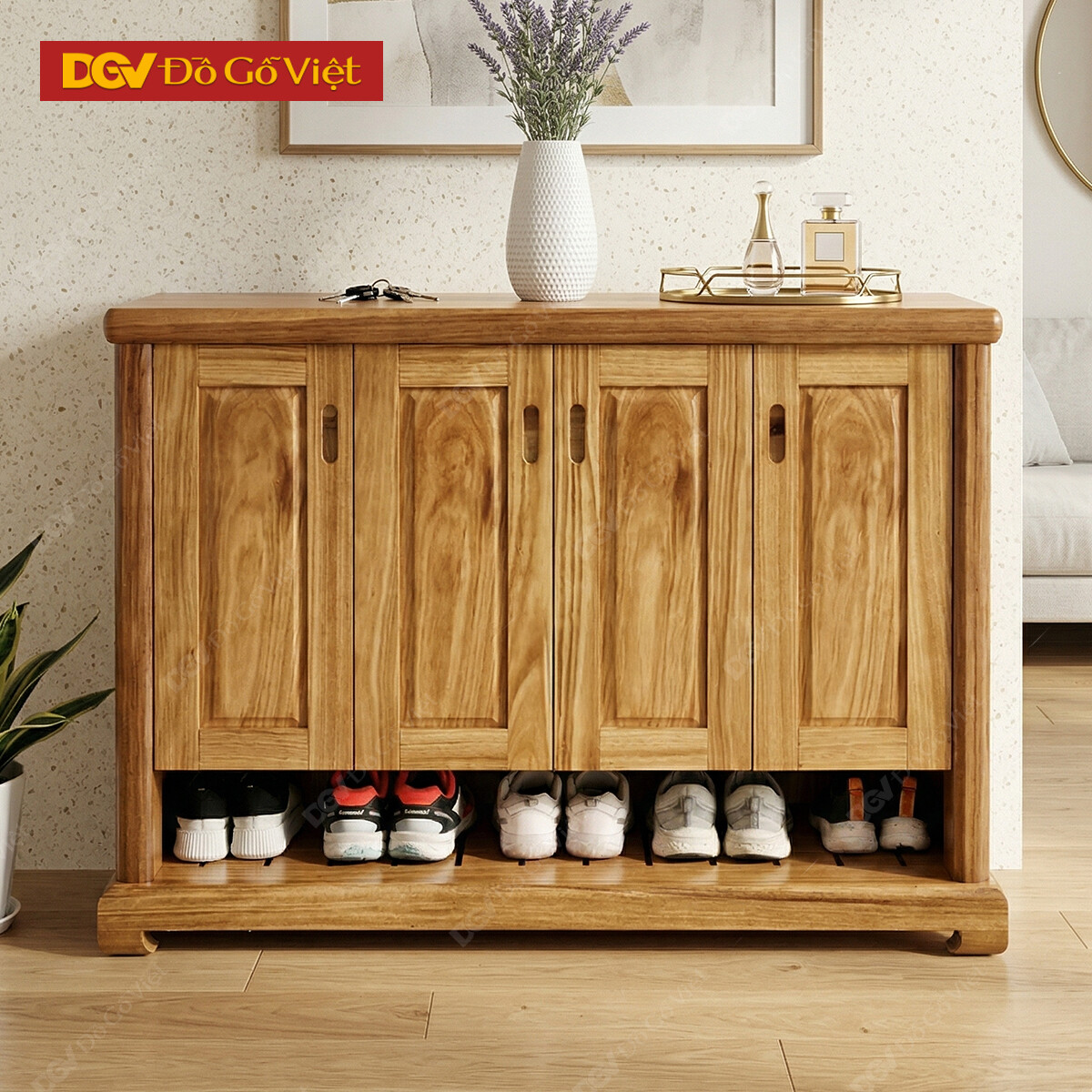 Tủ Giày Gỗ Đẹp 4 Cánh Mở Gỗ Hương Xám Tự Nhiên