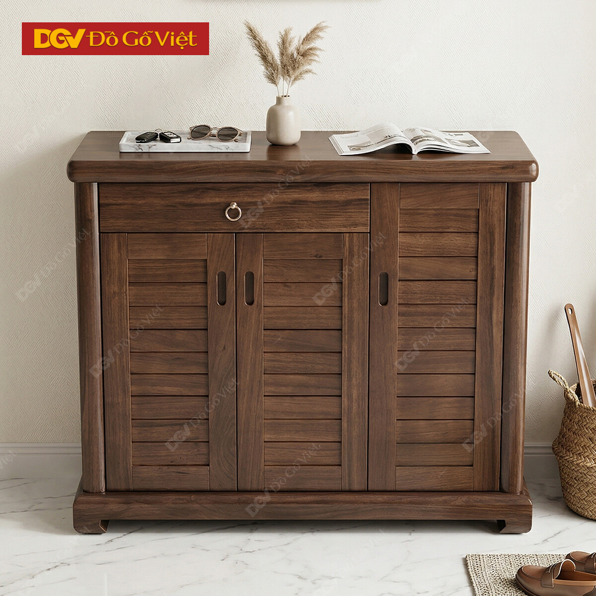 Tủ Đựng Giày Dép Bằng Gỗ Mun Cánh Nan Gọn Gàng Cho Phòng Nhỏ