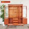 • Mặt bên & 3 cánh mở được gắn lớp kính trong suốt, với khả năng phản quang hiệu quả, tăng thêm vẻ đẹp cho những chai rượu được bày trí bên trong. Tầng dưới tủ rượu gỗ hương đá chia thành 3 ngăn gồm 2 ngăn lớn, 1 ngăn kéo với 3 hộc kệ riêng biệt. Với không gian rộng rãi (sâu 36cm), rất tiện lợi cho việc để đồ dùng, phụ kiện cần thiết khác.