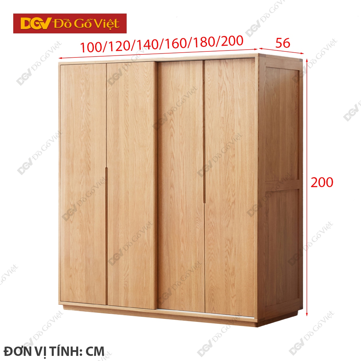Tủ Đựng Quần Áo Cửa Lùa Gỗ Cao Su Veneer Sồi Đẹp Giản Dị