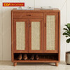 Tủ Giày Dép Gỗ Xoan 3 Cánh Đan Mây Phong Cách Mộc Mạc