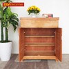 • Tủ giày dép được thiết kế theo phong cách đơn giản với 3 tầng kệ, 1 ngăn kéo có găn thanh ray trượt chuyên dụng, thao tác đơn giản, nhanh chóng. Với kích thước nội thất tủ rộng rãi (sâu 35cm) đáp ứng tốt nhu cầu sử dụng của gia đình từ 4 – 6 thành viên, khách hàng có số lượng giày dép, đồ dùng lớn.