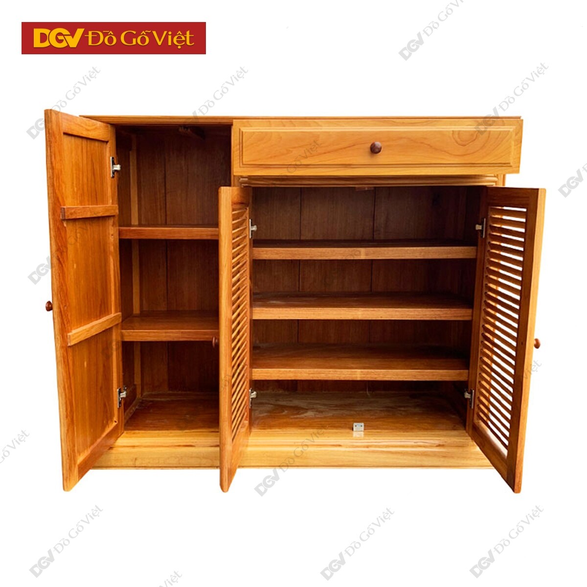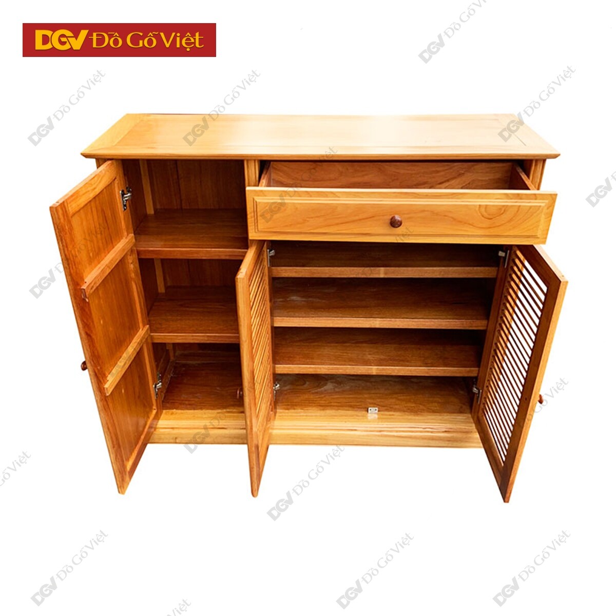 Bên trong tủ giày gõ đỏ được chia làm 2 buồng riêng biệt, bảo gồm nhiều tầng để tăng khả năng lưu trữ. Buồng lớn được sử dụng để đựng giày dép, bạn có thể cất nhiều loại giày khác nhau từ dép lê, giày bệt, giày da đến cao gót theo ý muốn.