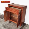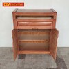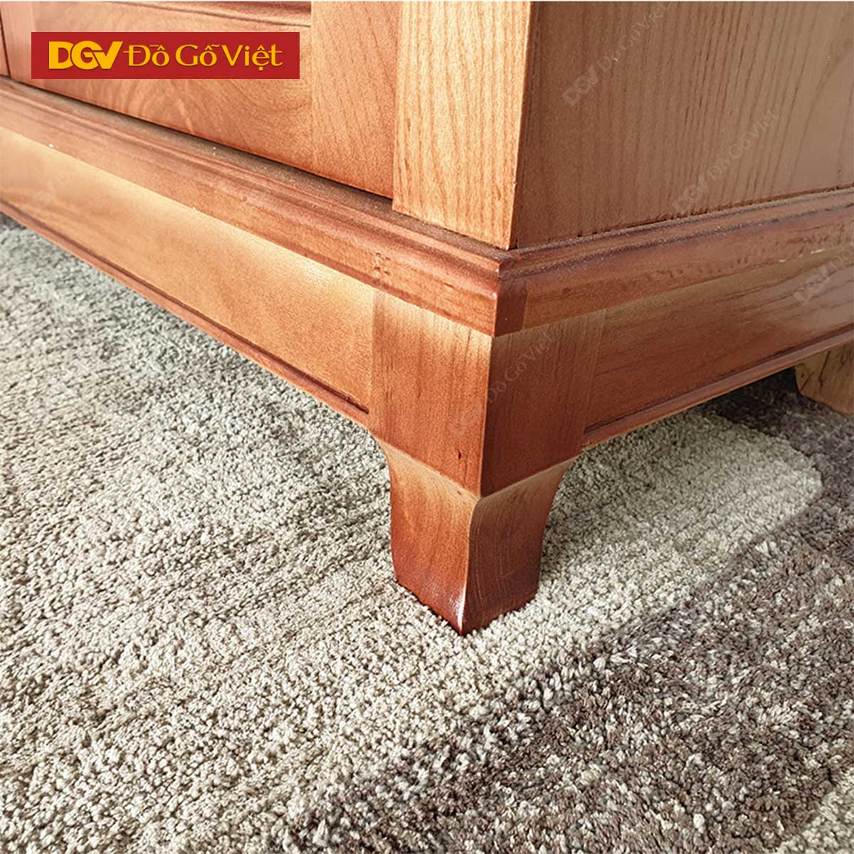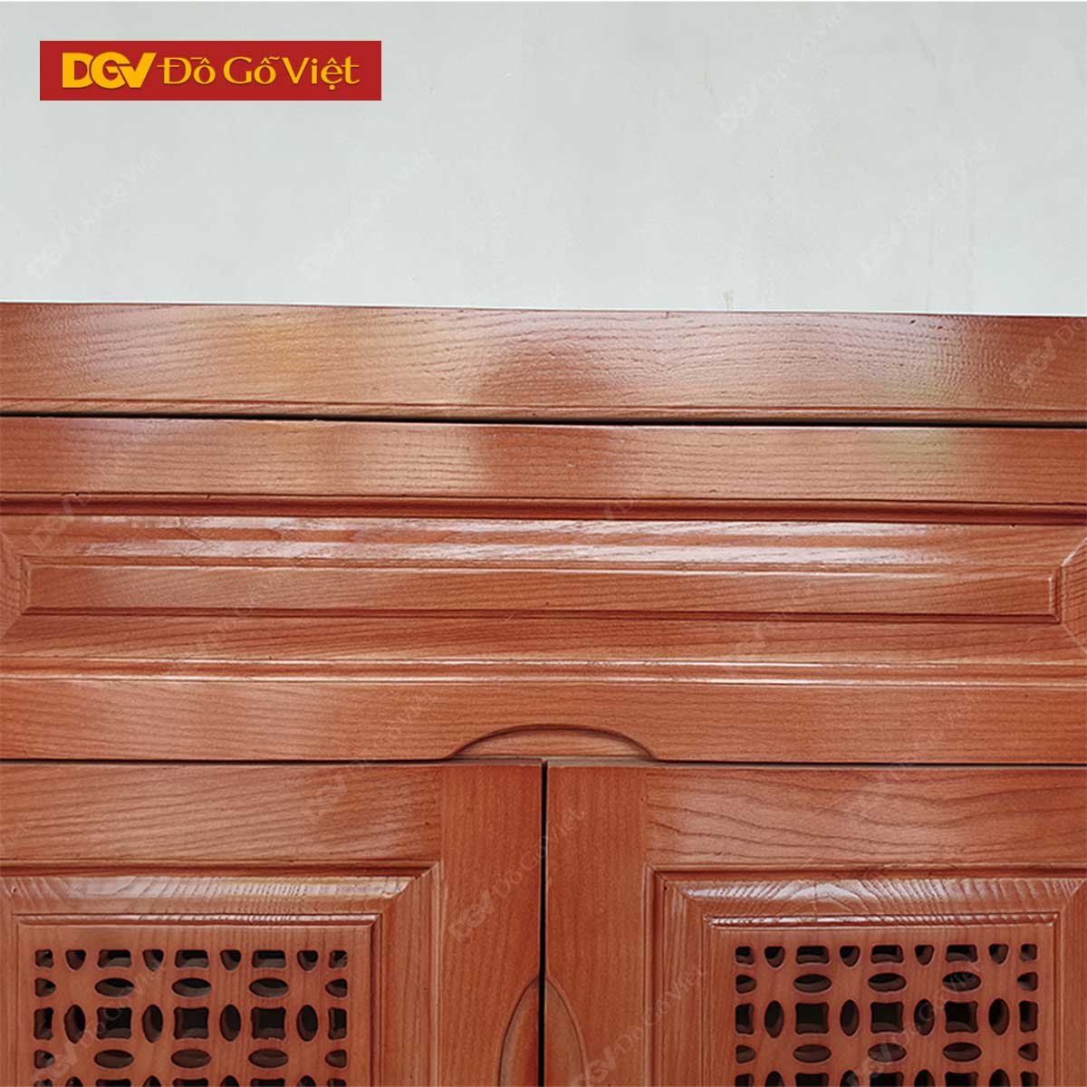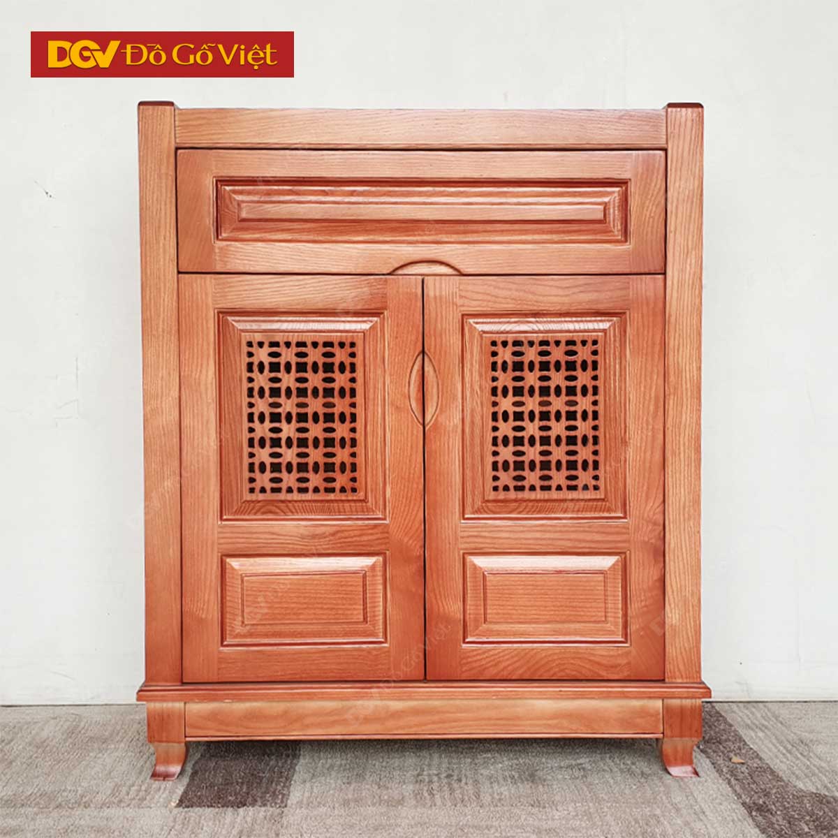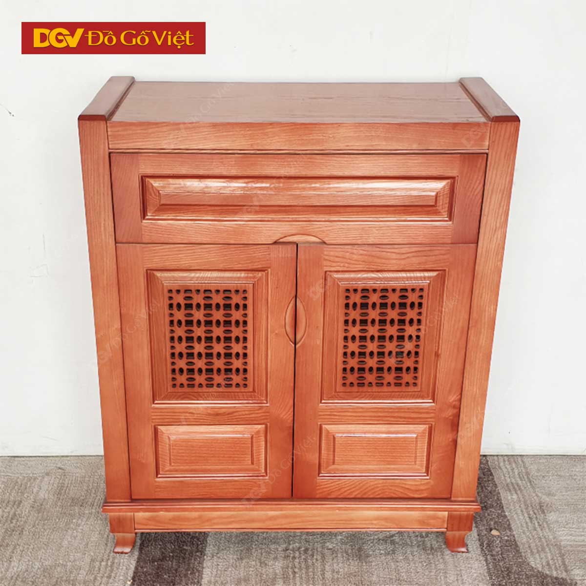 • Tủ đựng giày dép bằng gỗ giá rẻ thiết kế theo phong cách cổ điển truyền thống với 2 cánh mở đơn thông thường. Mặt cánh tủ chạm họa tiết đồng tam tài mặt vuông tạo thành các lỗ thông gió thông minh nhằm loại bỏ mùi hôi và tránh ẩm mốc cho giày dép. Tay nắm tủ hình bán nguyệt chạm âm giúp tối ưu diện tích, thuận tiện cho việc đóng và mở tủ.