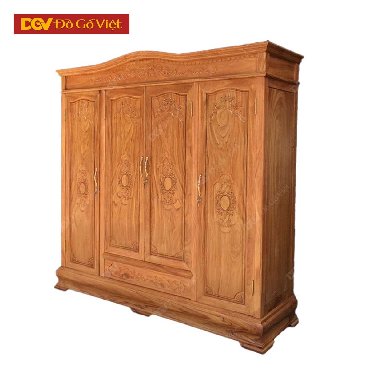 Tủ Quần Áo Gỗ Gõ Đỏ Tự Nhiên 4 Cánh Mở Đẹp Giá Rẻ