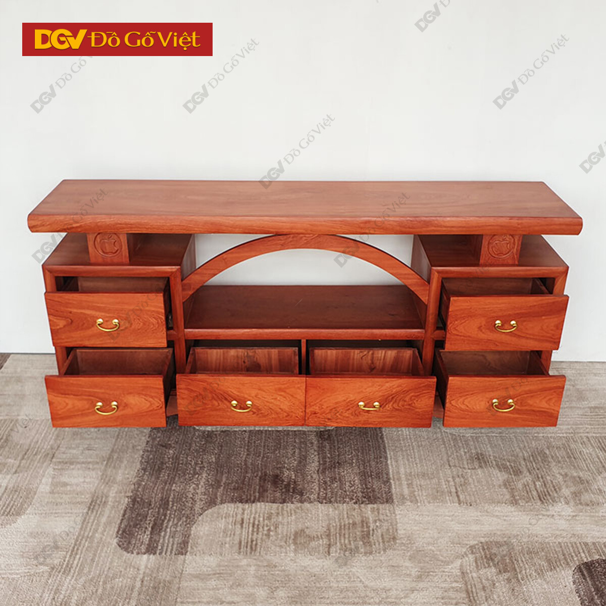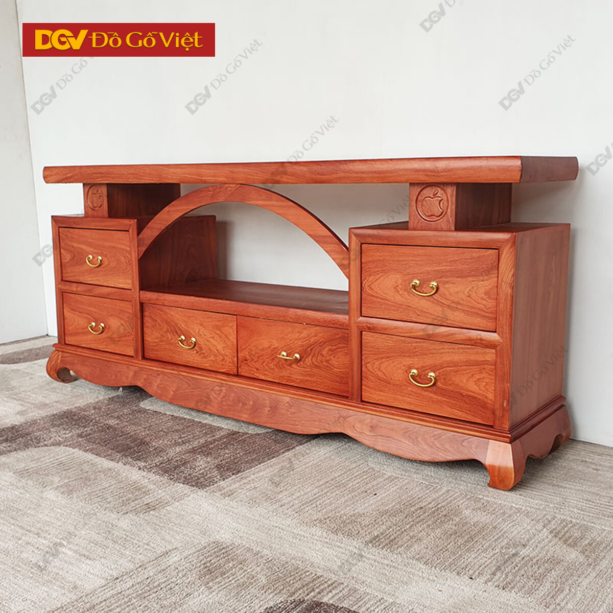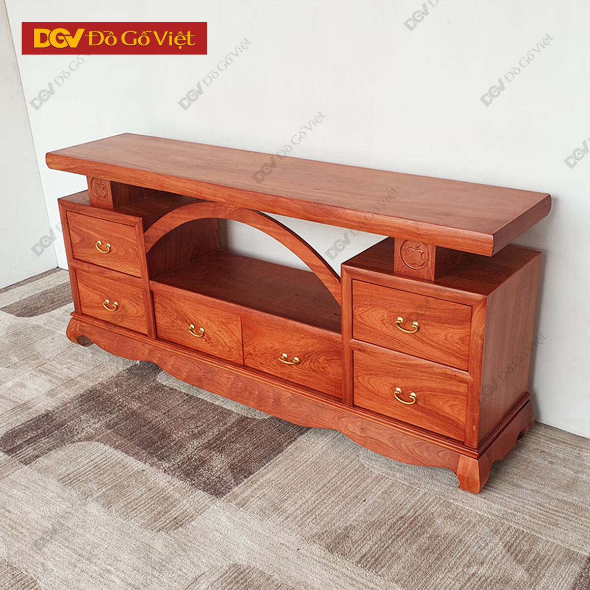 Kệ tủ tivi được làm từ gỗ hương đá tự nhiên lâu năm với các thớ gỗ nhẵn mịn đem lại cảm nhận thị giác mới lạ cho khách hàng. Đây là loại gỗ tự nhiên tốt với khả năng chống mối mọt, cong vênh và ẩm mốc hiệu quả, với tuổi thọ cao cùng giá trị sử dụng lâu dài phục vụ cho khách hàng hiệu quả hơn.