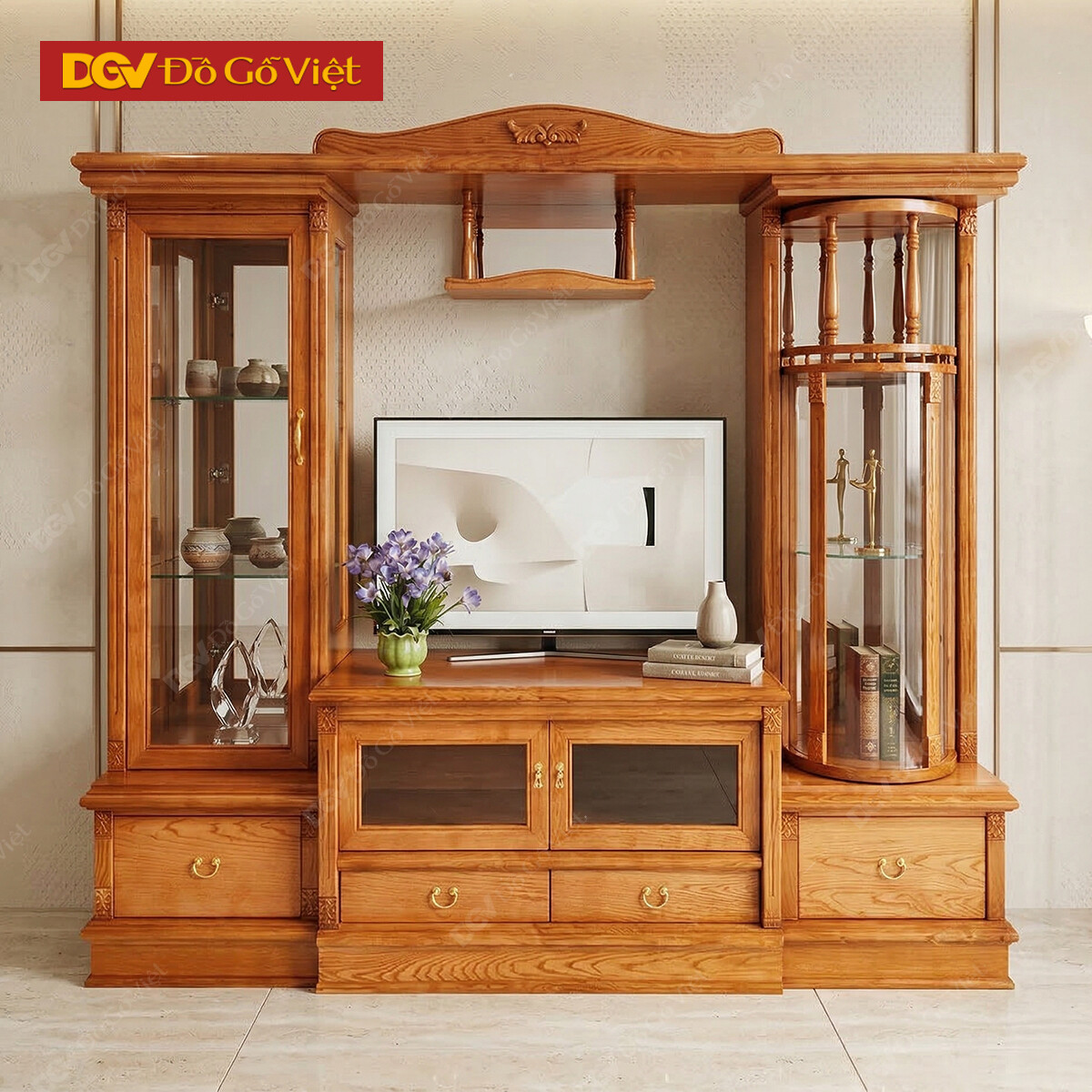 Tủ Kệ Tivi Kết Hợp Tủ Rượu Và Bàn Thờ Gỗ Sồi Nga Đẹp Giá Tốt