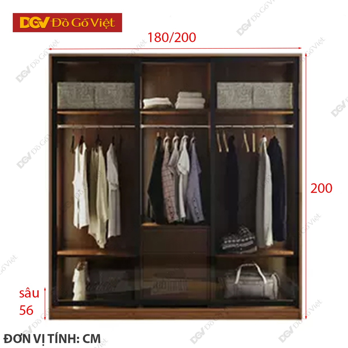 Mẫu tủ quần áo đẹp hiện đại phần khung gỗ MDF lõi xanh chống ẩm kết hợp với khung gỗ cánh kính cường lực chống va đập, chống nứt vỡ là sản phẩm chất lượng cao có giá trị sử dụng lâu dài.