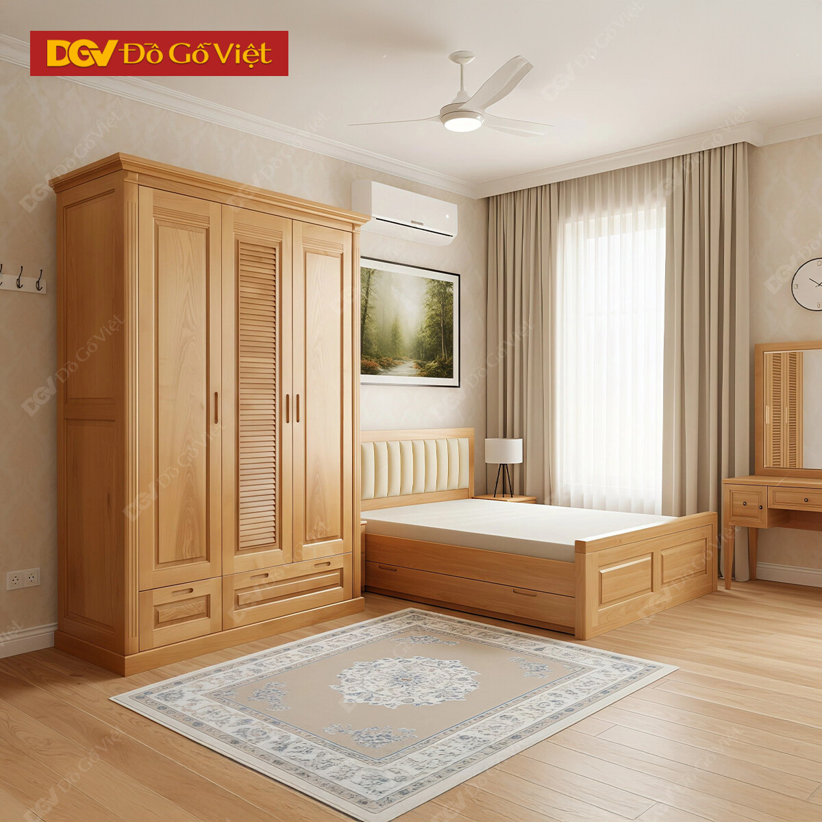 Tủ Áo Quần Gỗ Sồi Tự Nhiên 3 Buồng 4 Cánh Bền Đẹp Giá Rẻ