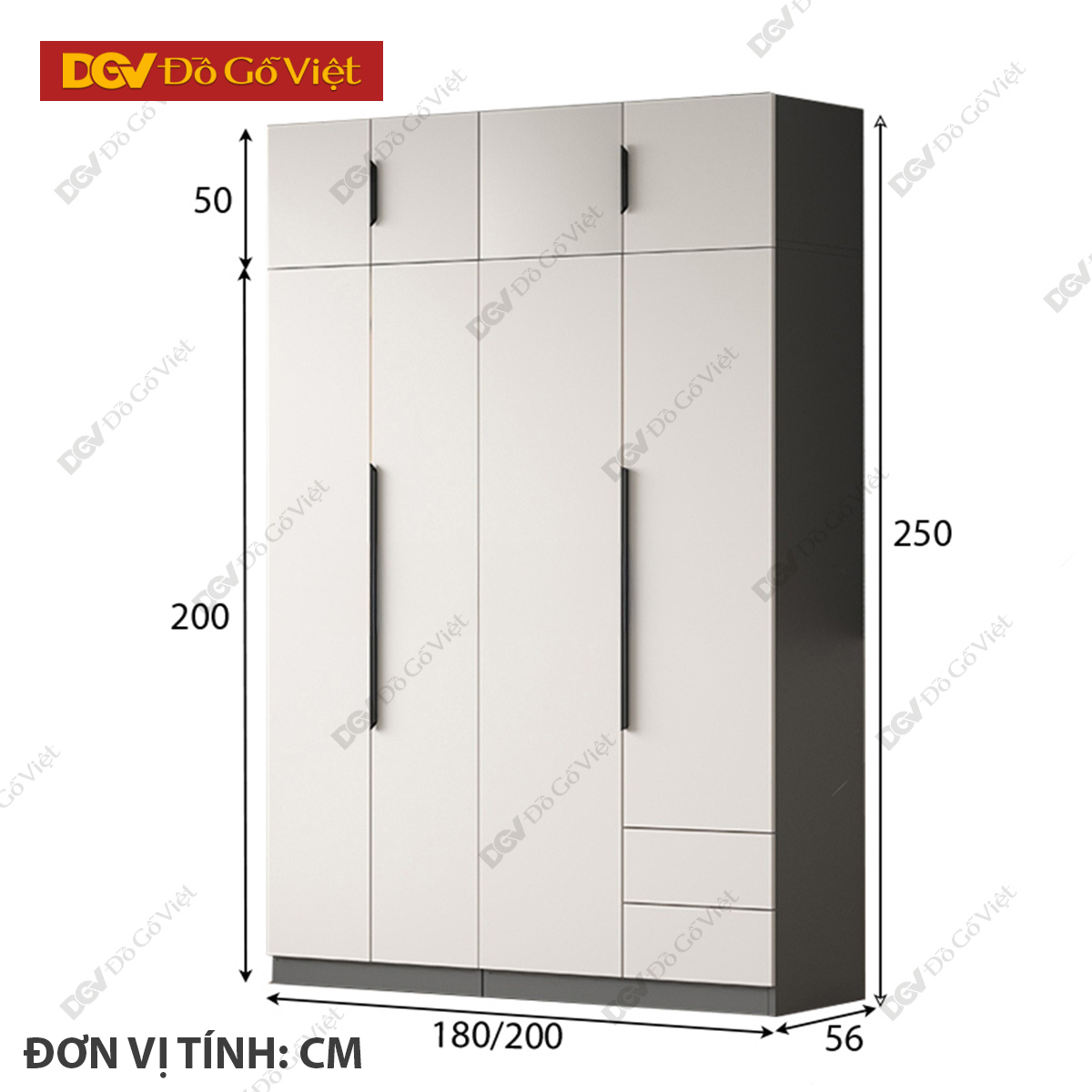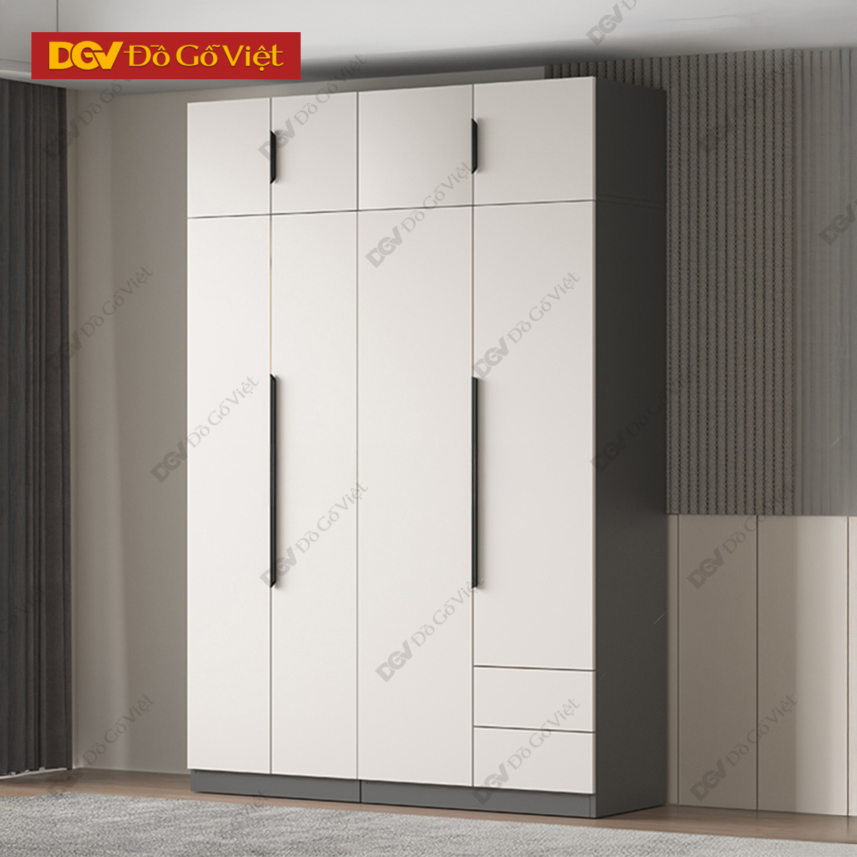 Tủ Quần Áo 4 Cánh Gỗ MDF Màu Xám Phối Trắng Hiện Đại Đẹp