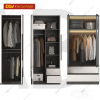 • Nội thất bên trong tủ áo hiện đại công nghiệp chia đều thành các tầng treo và ngăn xếp với kích thước từ 40 – 80cm. Gắn kèm phụ kiện là các thanh treo inox 304 chịu lực được ghim chặt vào khung gỗ nâng cao khả năng chịu tải trọng. Các kệ tầng làm đơn để dễ dàng tháo rời khi thay đổi chiều cao kệ.