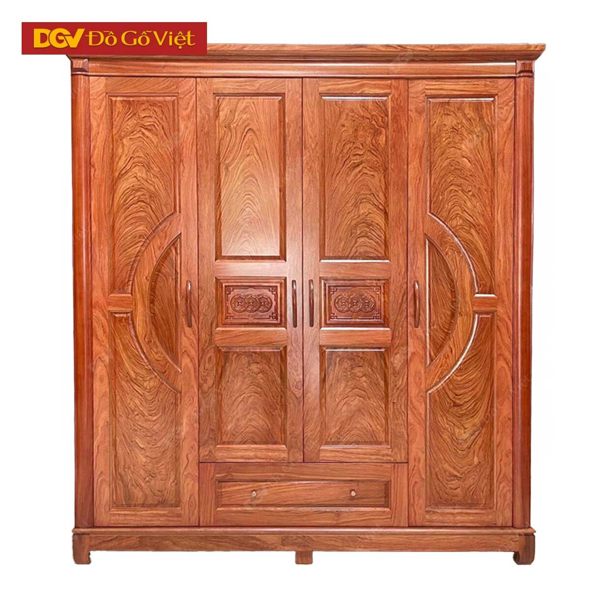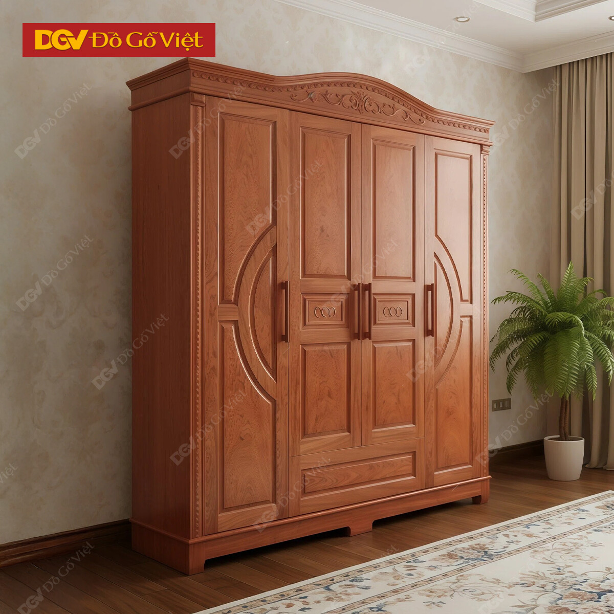Tủ Quần Áo 4 Cánh Gỗ Veneer Hương Đá Pano Cong Đẹp Bền