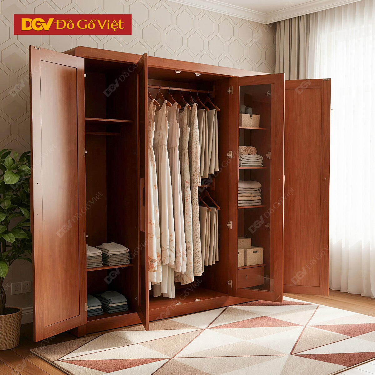 Mẫu Tủ Quần Áo Gỗ 5 Cánh Dành Cho Gia Đình Đông Người