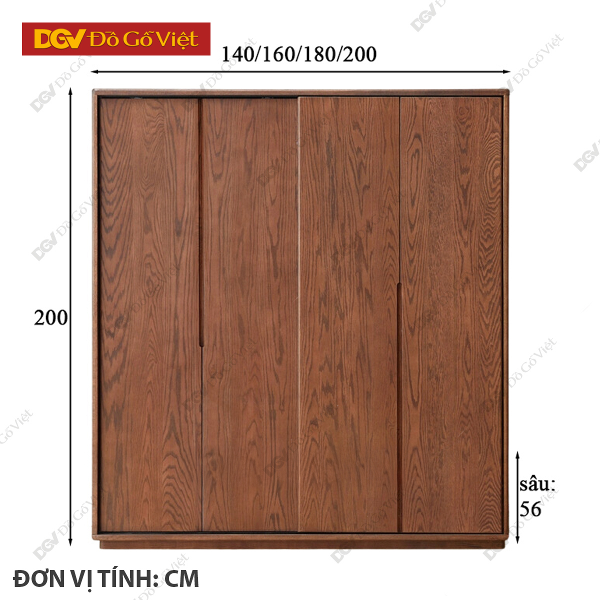 Tủ Áo Gỗ Cao Su Veneer Sồi 4 Cánh Dáng Trơn Tối Giản