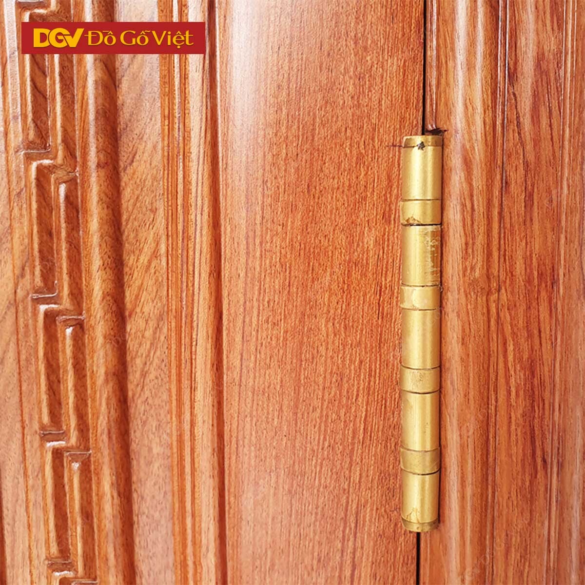 • Phụ kiện tủ gồm tay nắm tủ, thanh treo áo quần, cho đến những tấm gỗ làm tủ đều được làm từ gỗ hương đá tự nhiên cao cấp. Chất gỗ tốt, đảm bảo tiêu chuẩn chất lượng, đã được xử lý giảm thiểu tối đa tình trạng cong vênh, mối mọt. Tay nắm, bản lề tủ, khóa tủ làm từ inox không gỉ cao cấp đảm bảo độ bền ổn định với tuổi thọ lên tới > 50 năm.