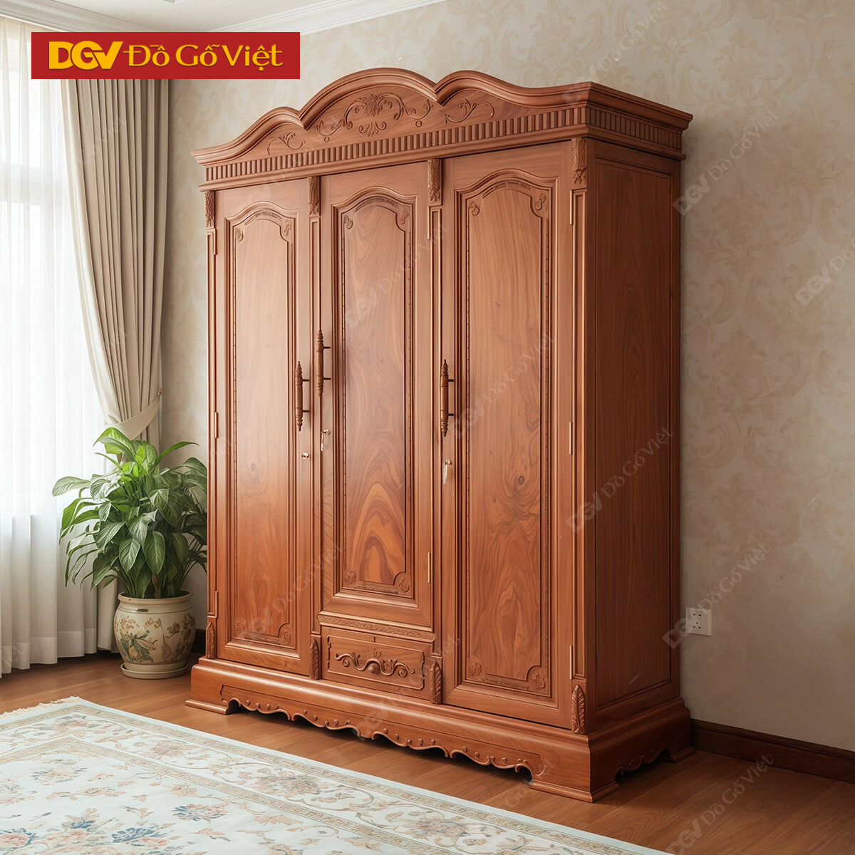 Tủ Quần Áo Gỗ Vân Hương Đá Kiểu Pano Đẹp Giá Rẻ