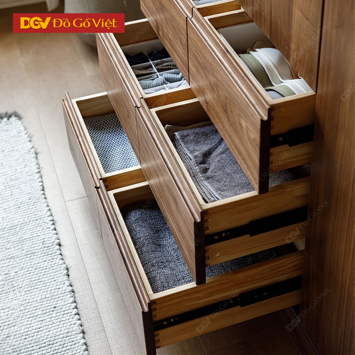 Tủ Áo Gỗ Óc Chó 4 Cánh Kèm Nóc Và Ngăn Kéo Tiện Dụng