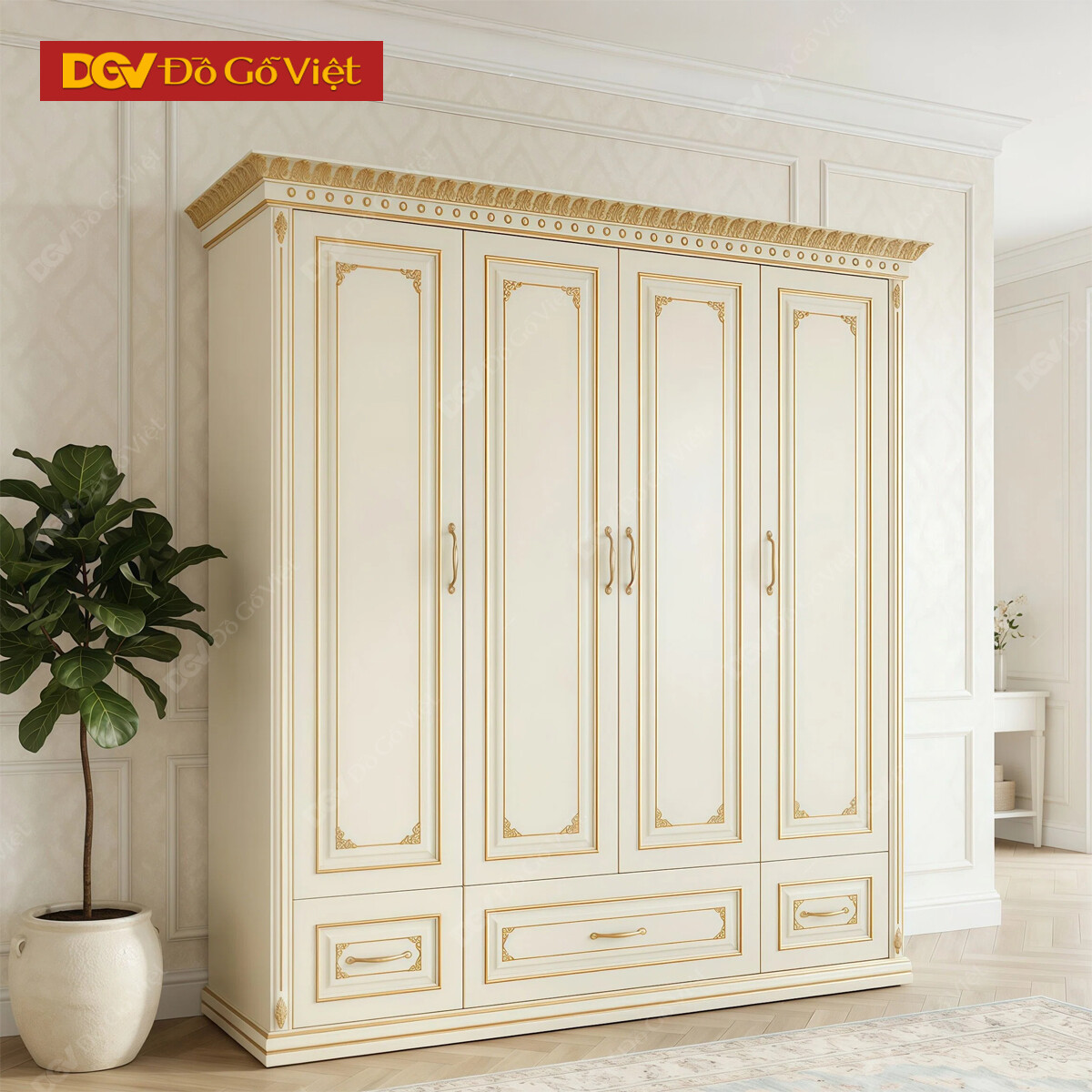 Mẫu Tủ Quần Áo Tân Cổ Điển Gỗ Sồi Mỹ 4 Cánh Phối Chân...