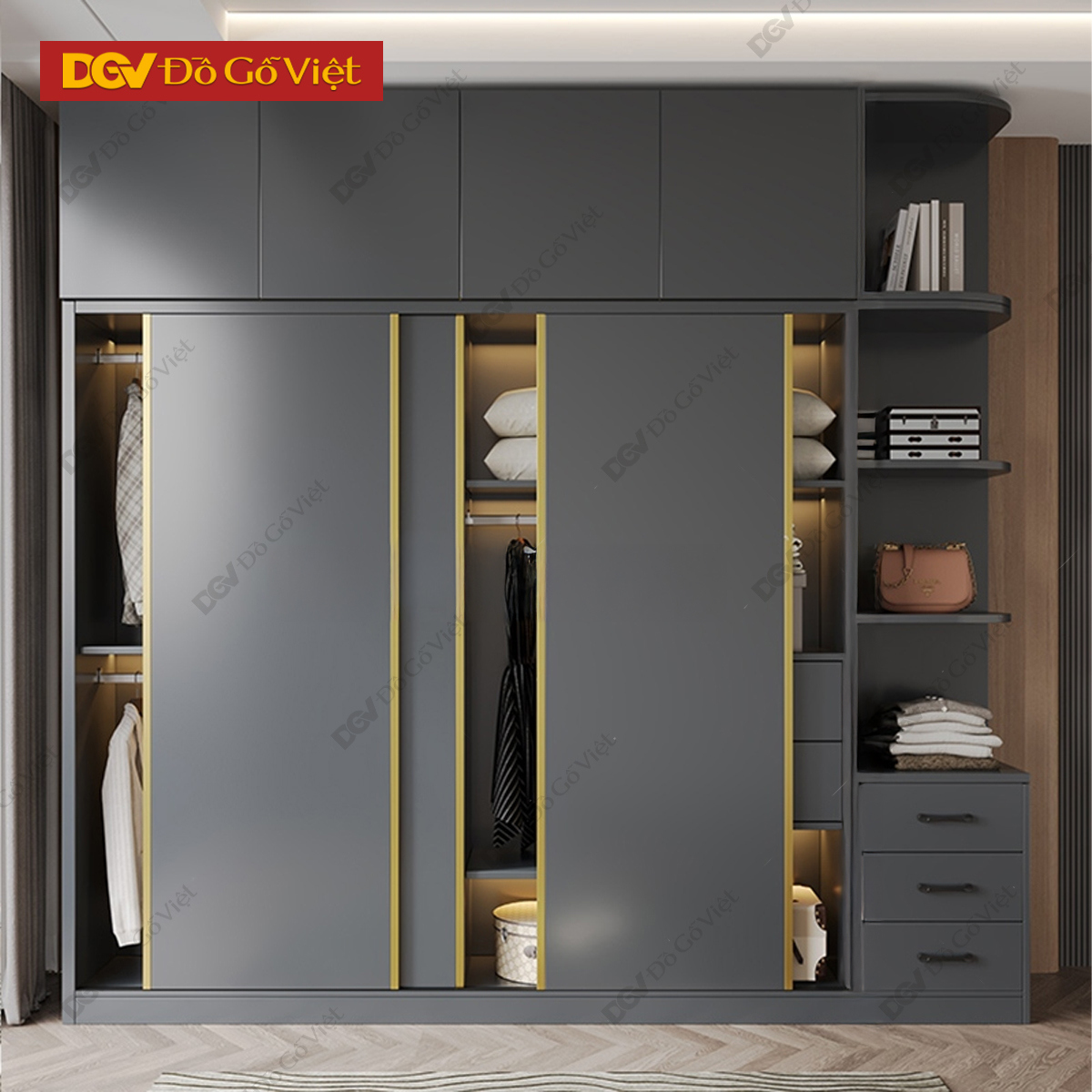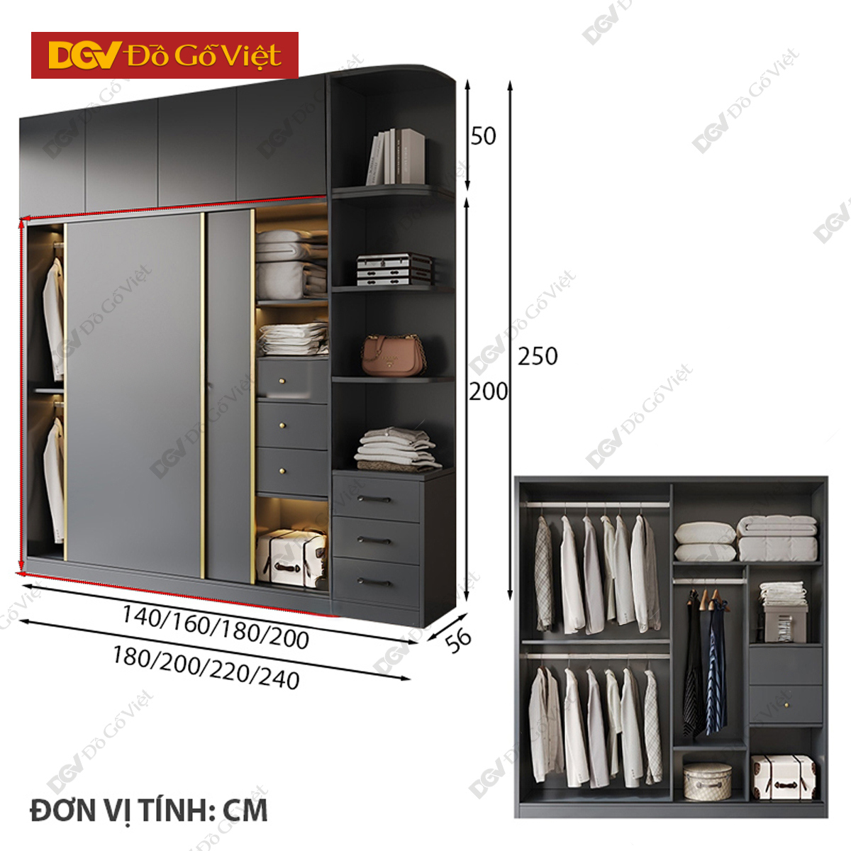 Tủ Quần Áo Màu Xám Kèm Nóc Và Kệ Trang Trí Đẹp Giá Rẻ