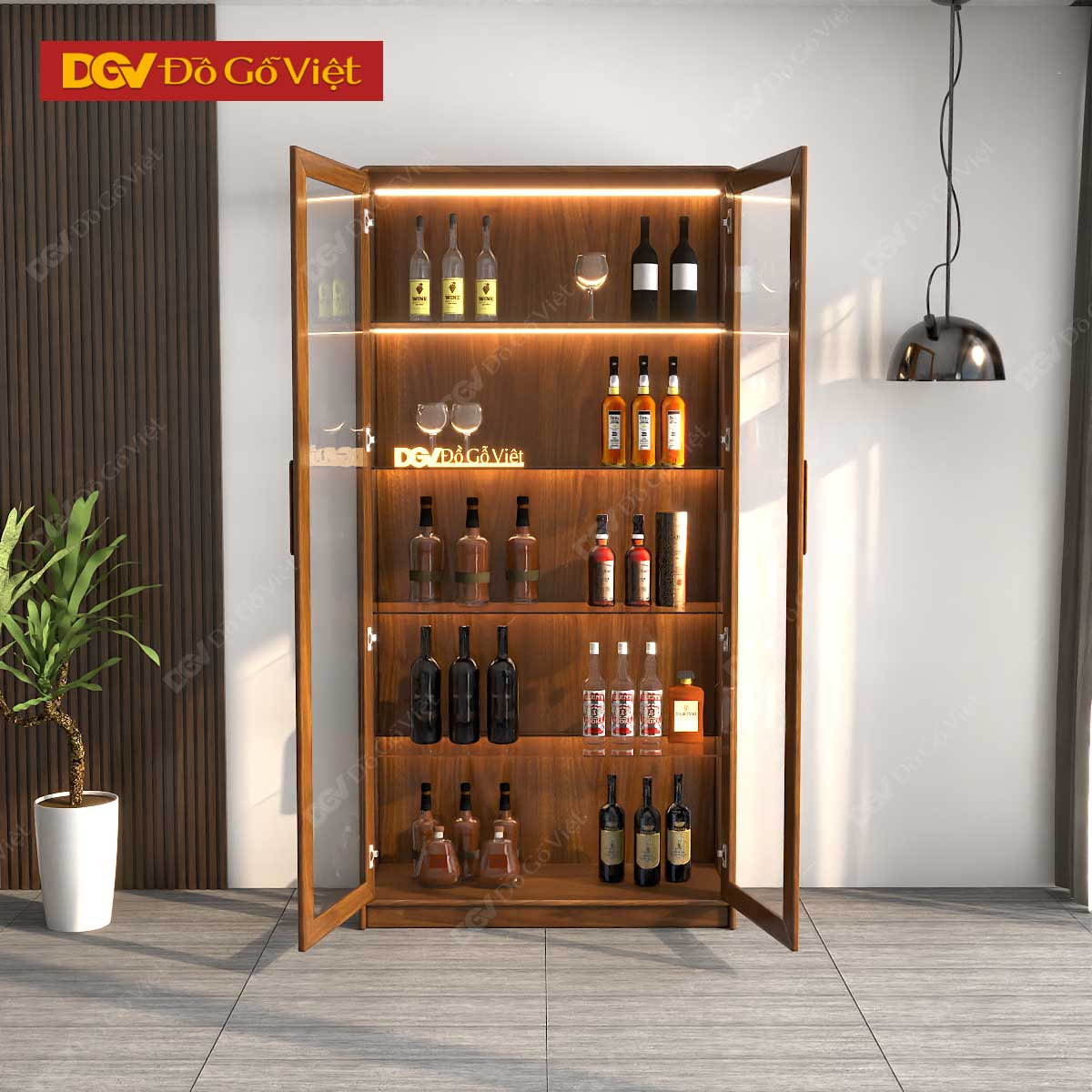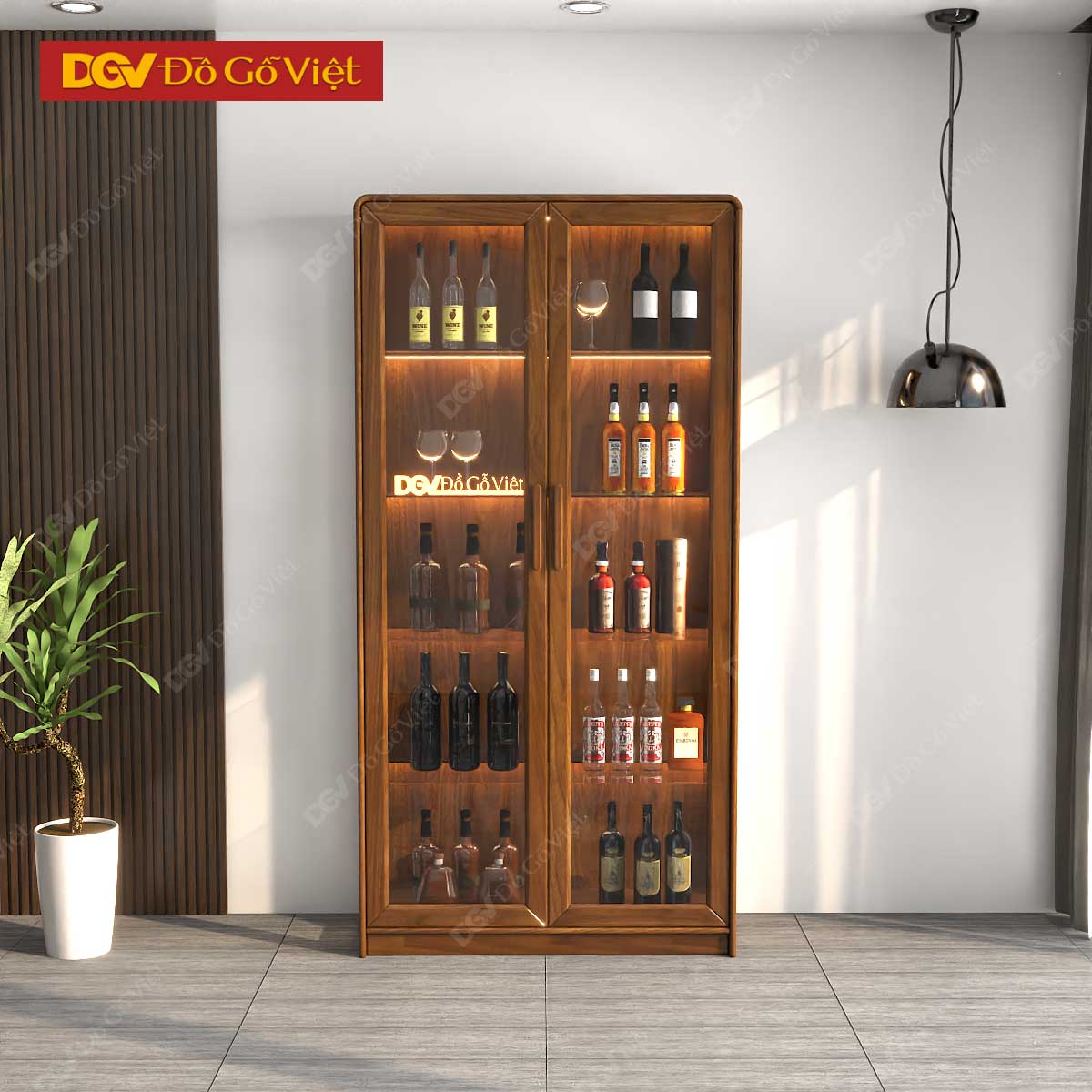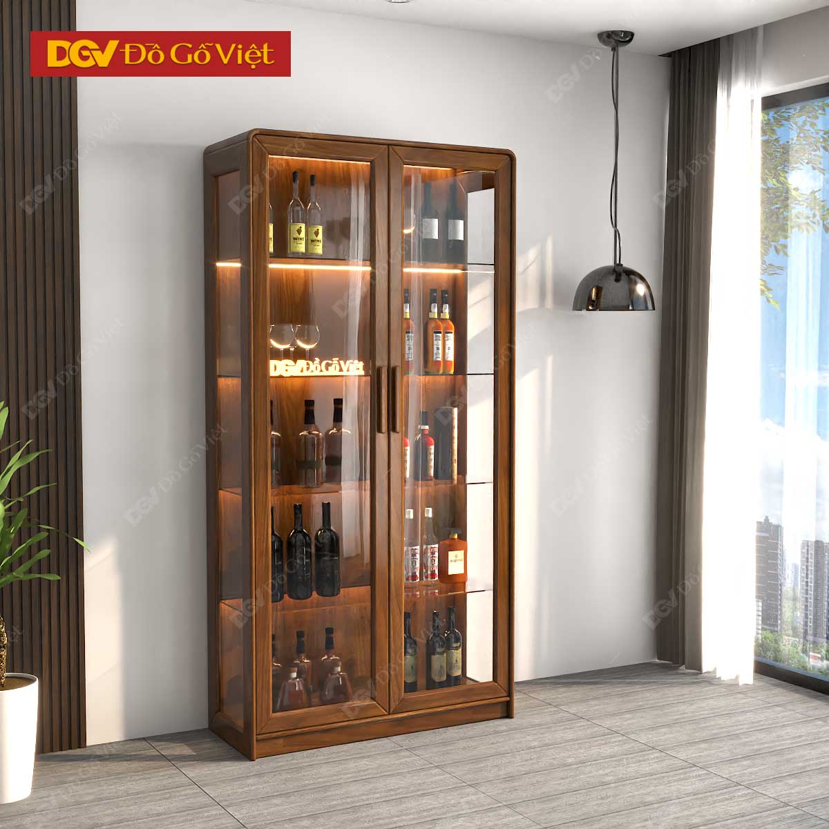 Tủ Rượu Cánh Kính Đẹp Gỗ Tự Nhiên Màu Óc Chó Thanh Lịch