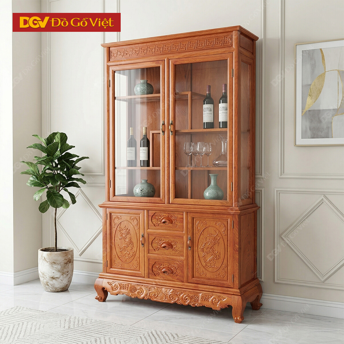 Tủ Rượu Gỗ Tự Nhiên Gỗ Hương Đá Vuông Cho Phòng Khách