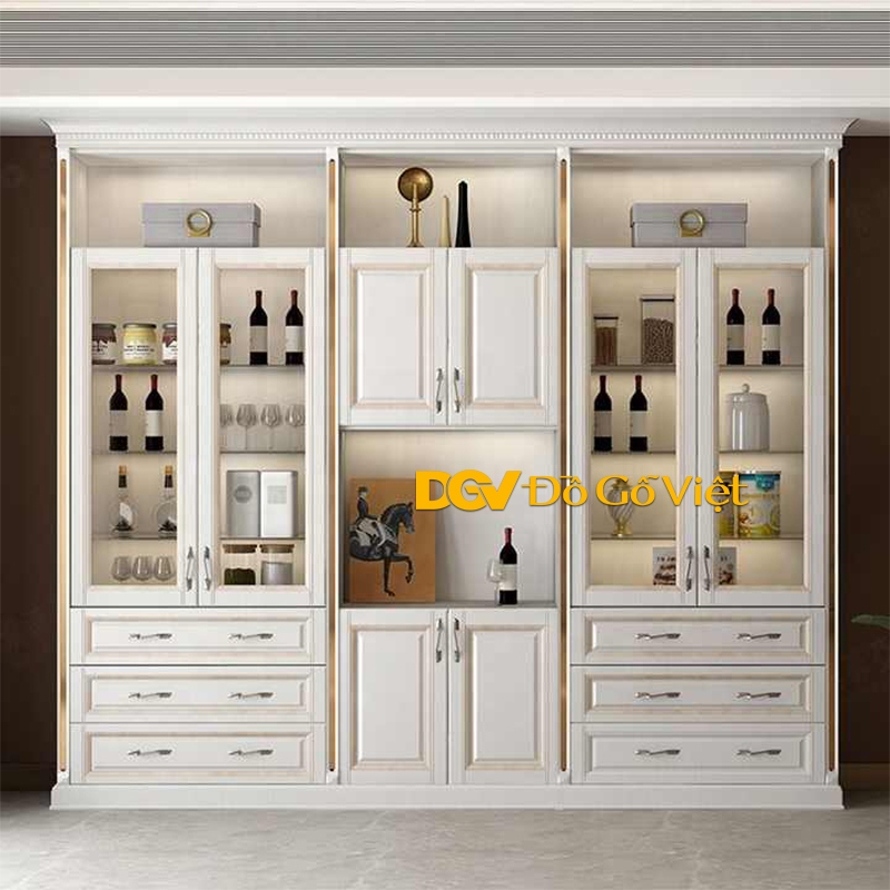 Tủ Rượu Gỗ Tự Nhiên Sơn Màu Trắng Đẹp Hàng Cao Cấp Giá Tốt