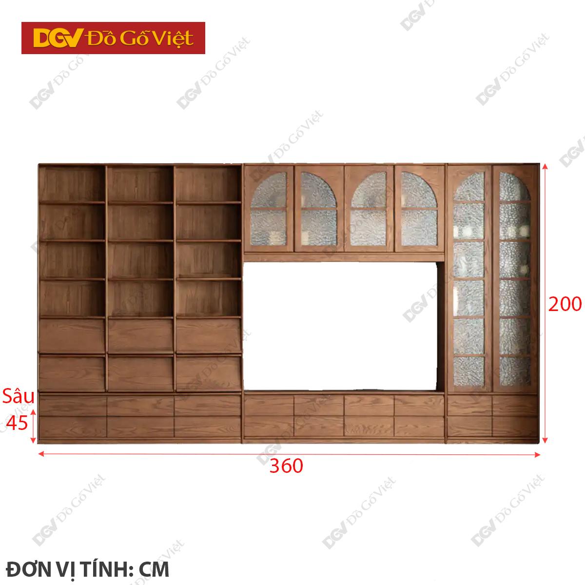 Tủ Trưng Bày Gỗ Veneer Sồi Kết Hợp Kệ Tivi Phòng Khách