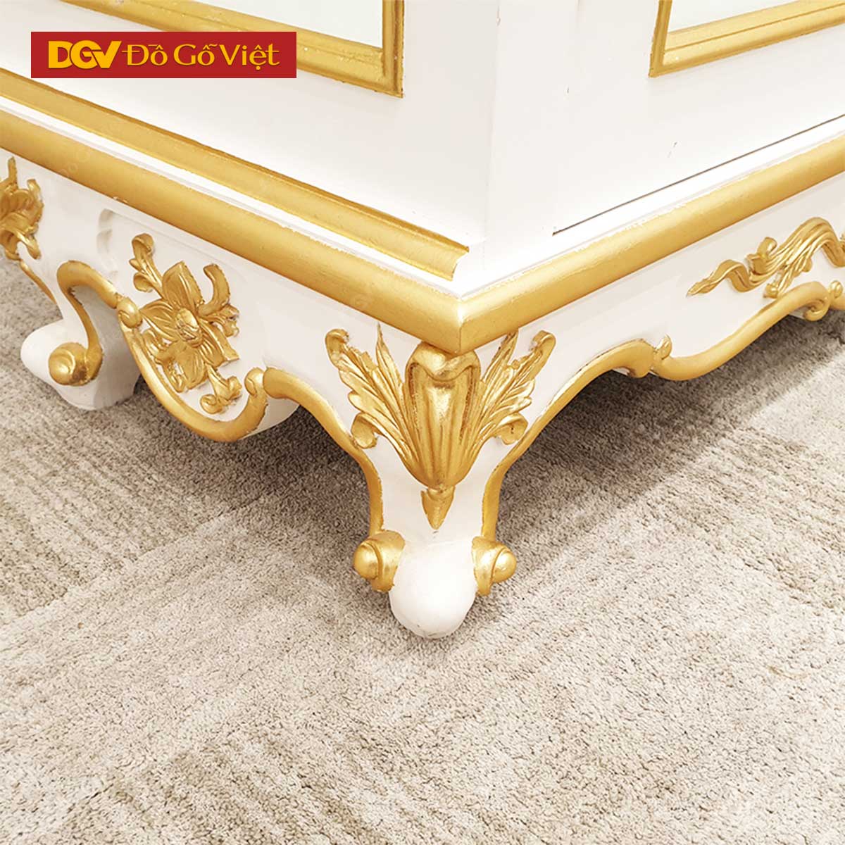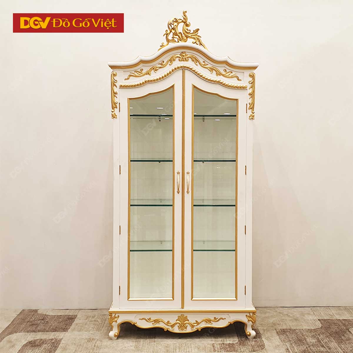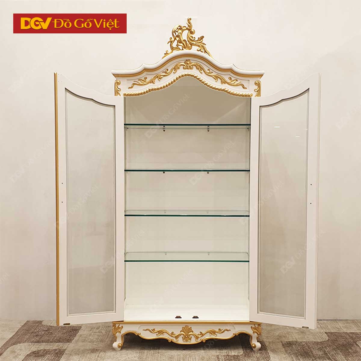 Tủ Rượu Sồi Mỹ Màu Trắng Giác Vàng Chạm Đỉnh Kiểu Cổ Điển