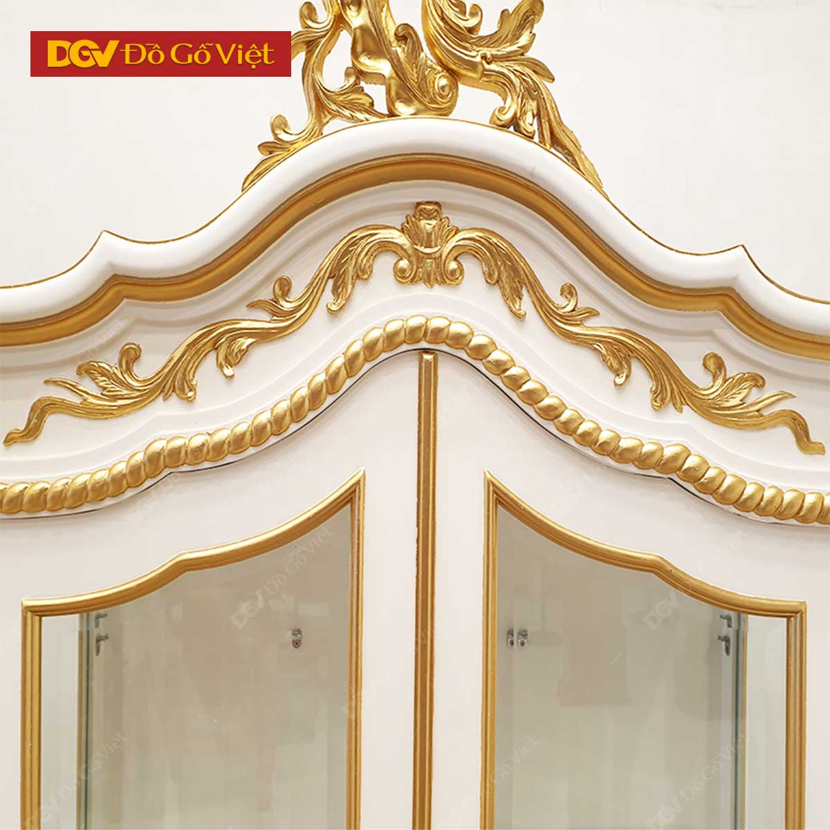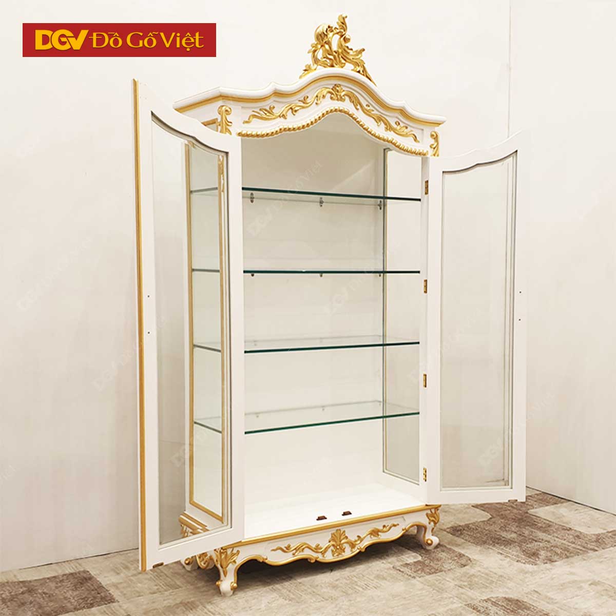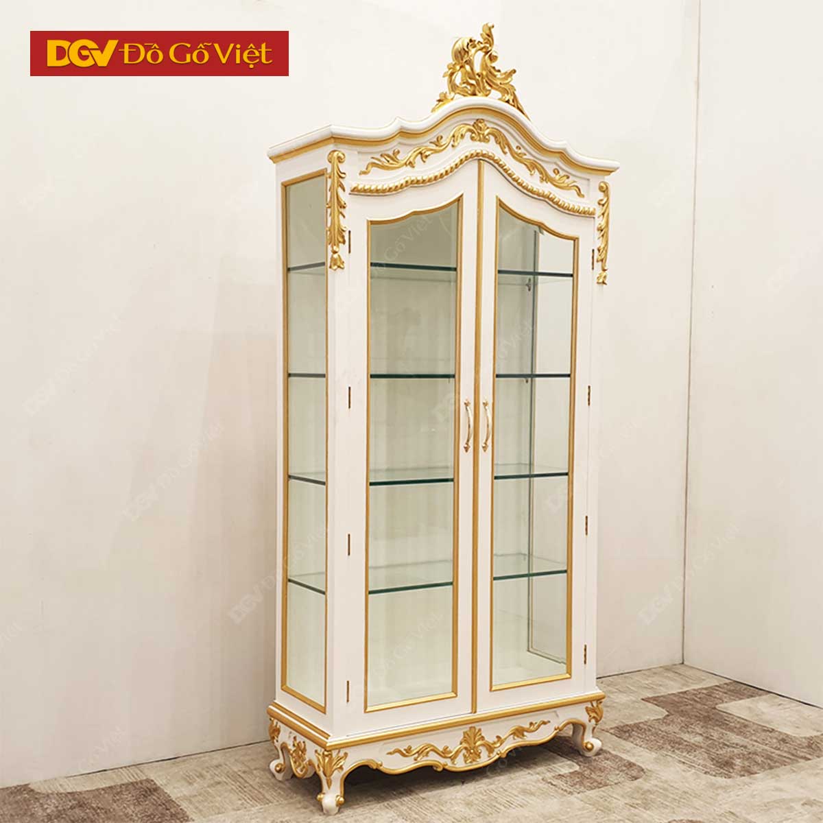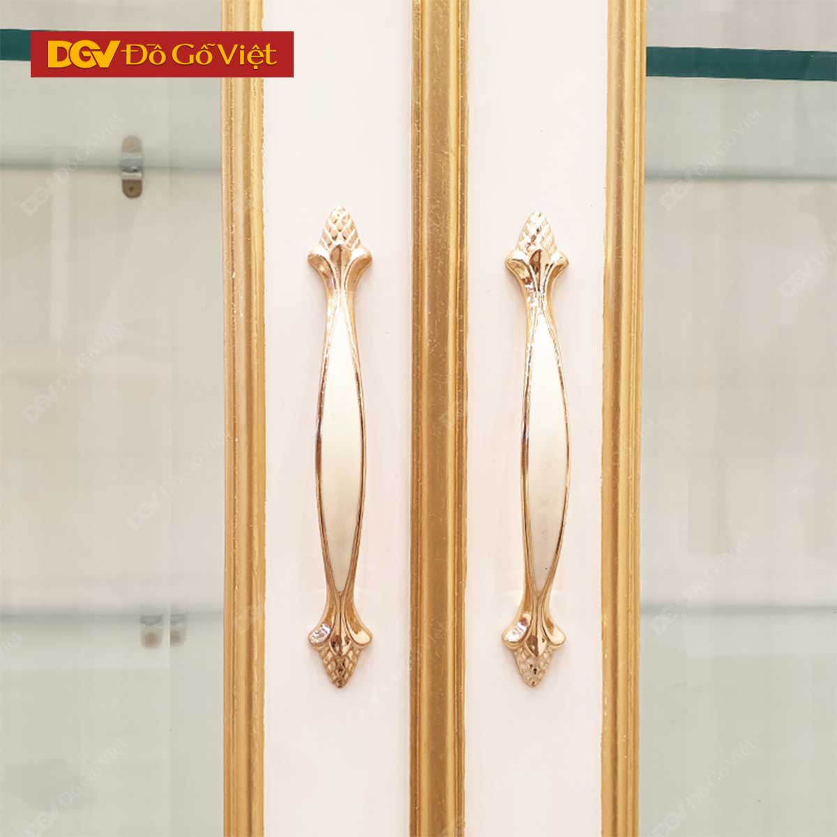 Tủ Rượu Sồi Mỹ Màu Trắng Giác Vàng Chạm Đỉnh Kiểu Cổ Điển