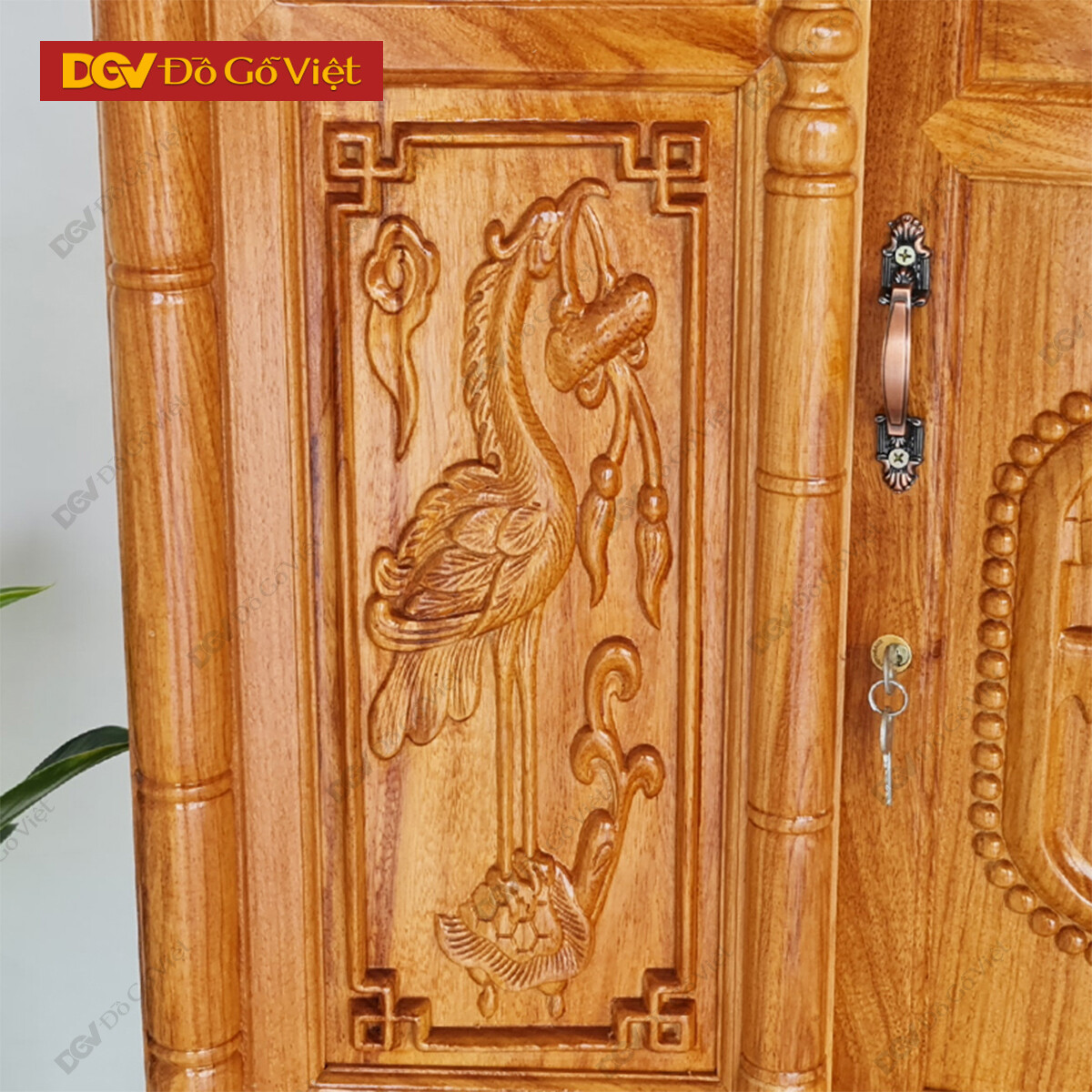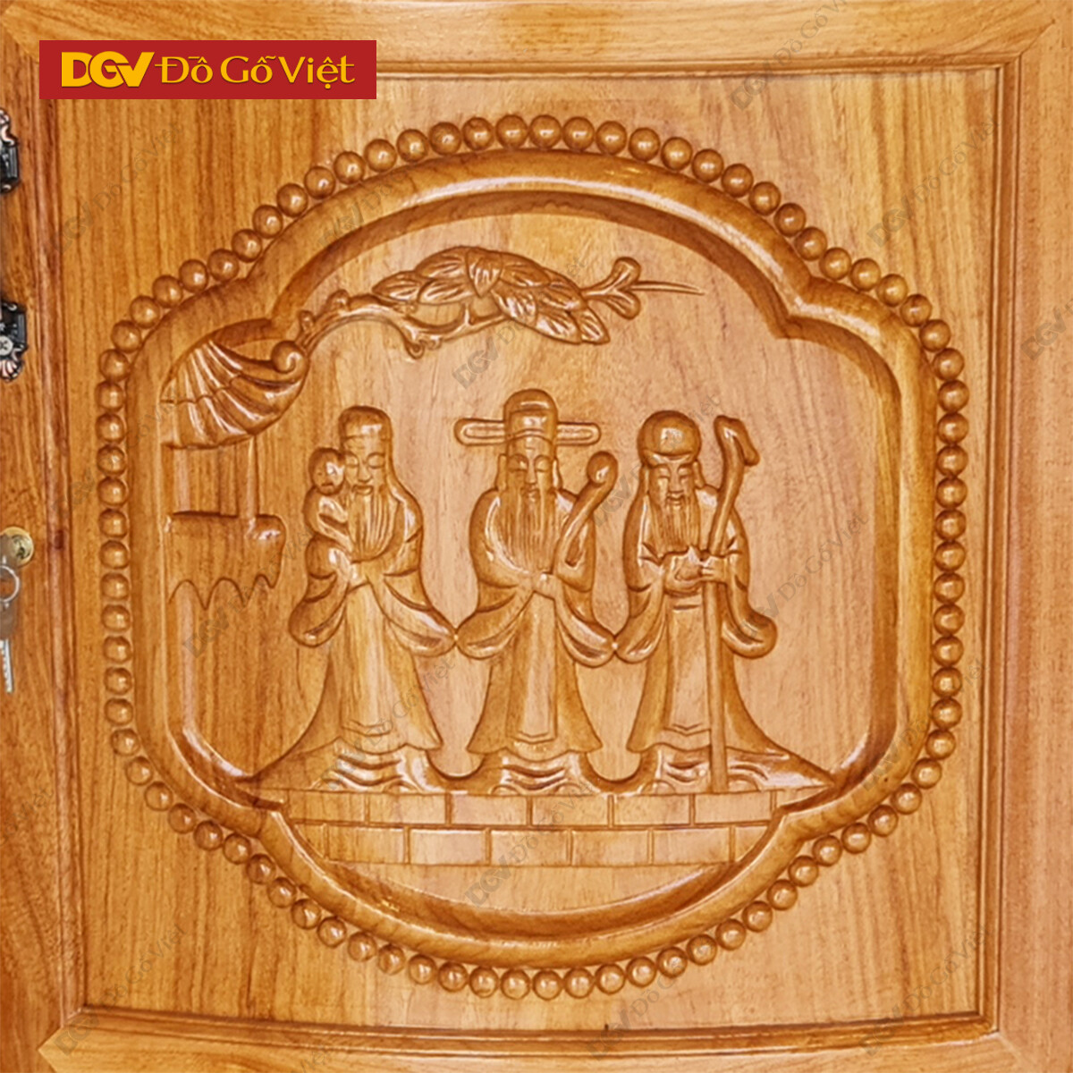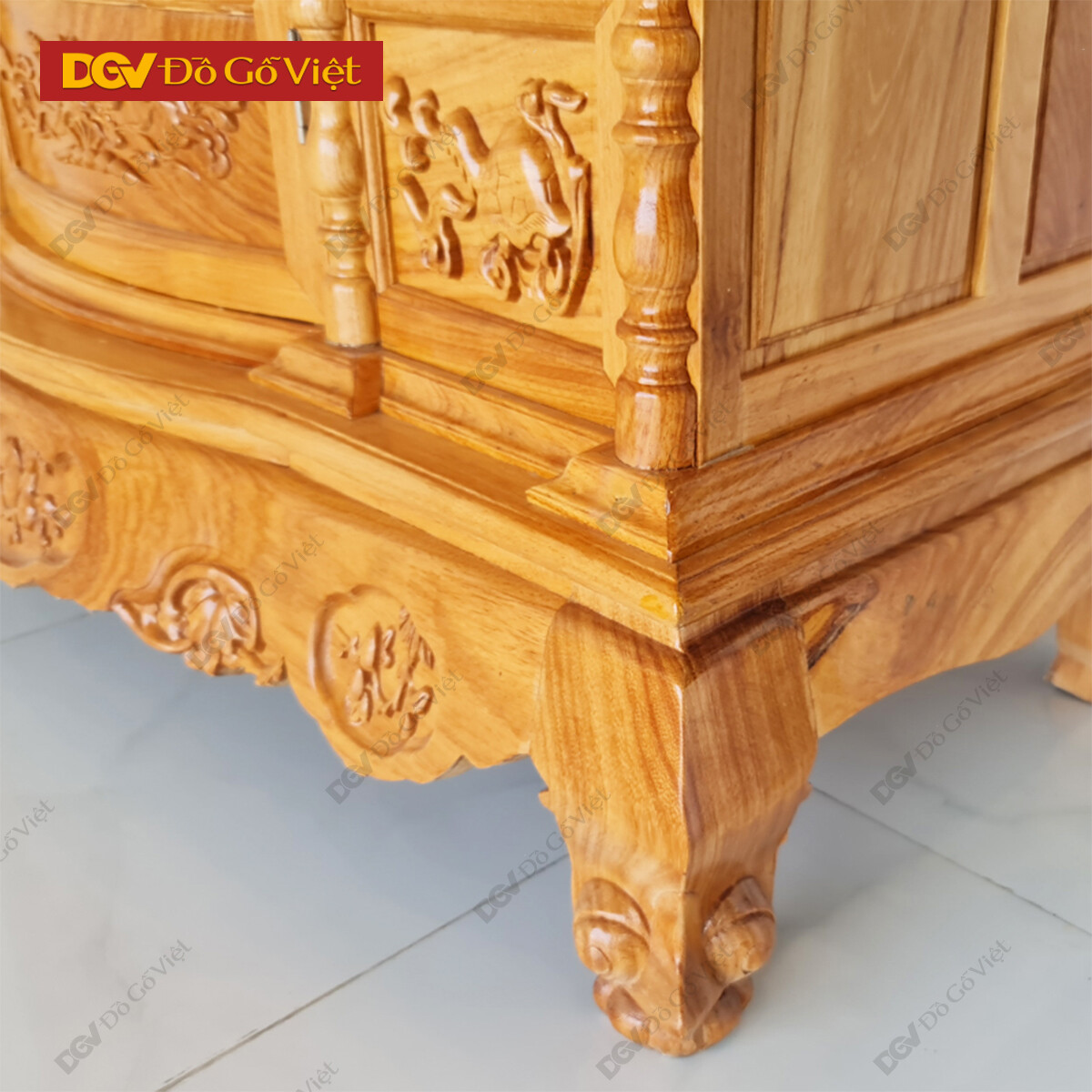 • Tủ thờ gia tiên được thiết kế theo phong cách cổ điển với tạo hình bụng phệ chân cong đẹp mắt. Mặt ngoài chạm họa tiết tam đa cầu tài, cầu lộc, cầu trường thọ và bình an cho gia chủ. Các họa tiết được chạm nổi khéo léo, các hoa văn chạm trổ tinh xảo tạo nên nét đẹp ấn tượng cho sản phẩm.