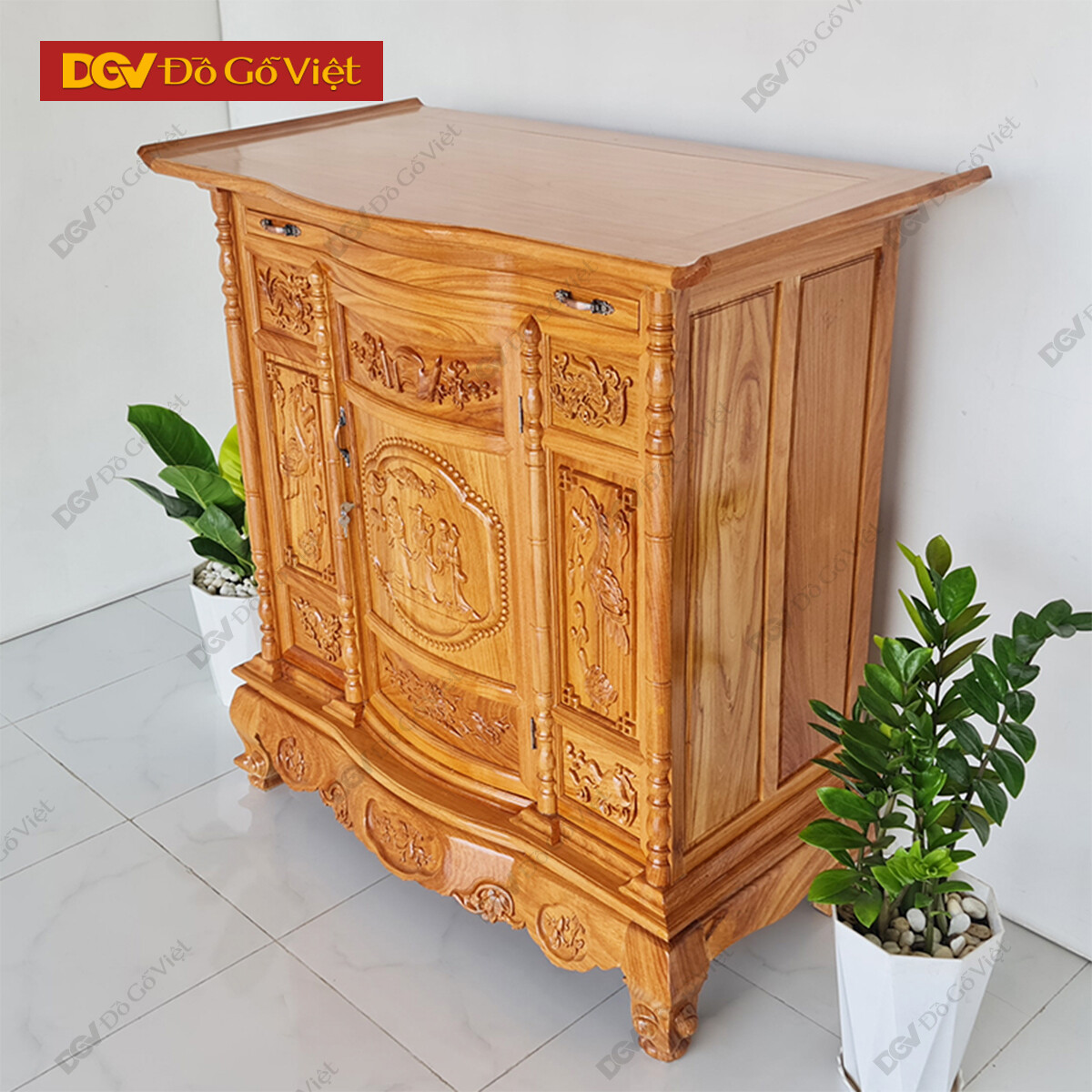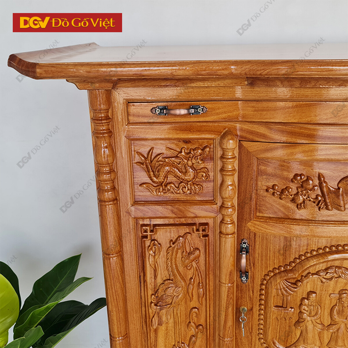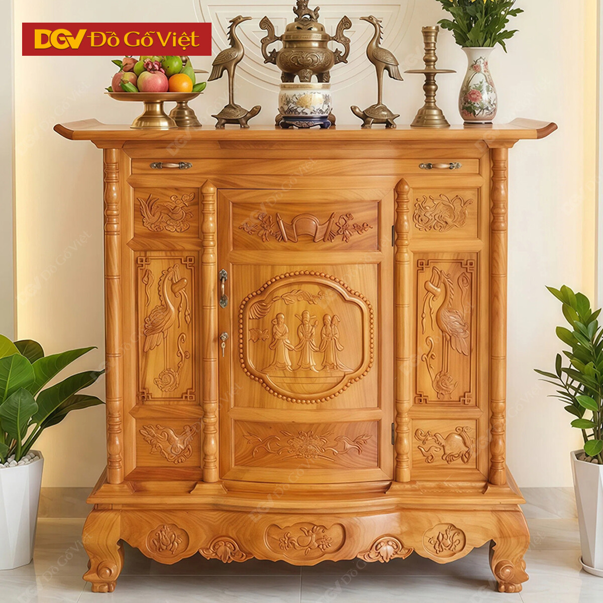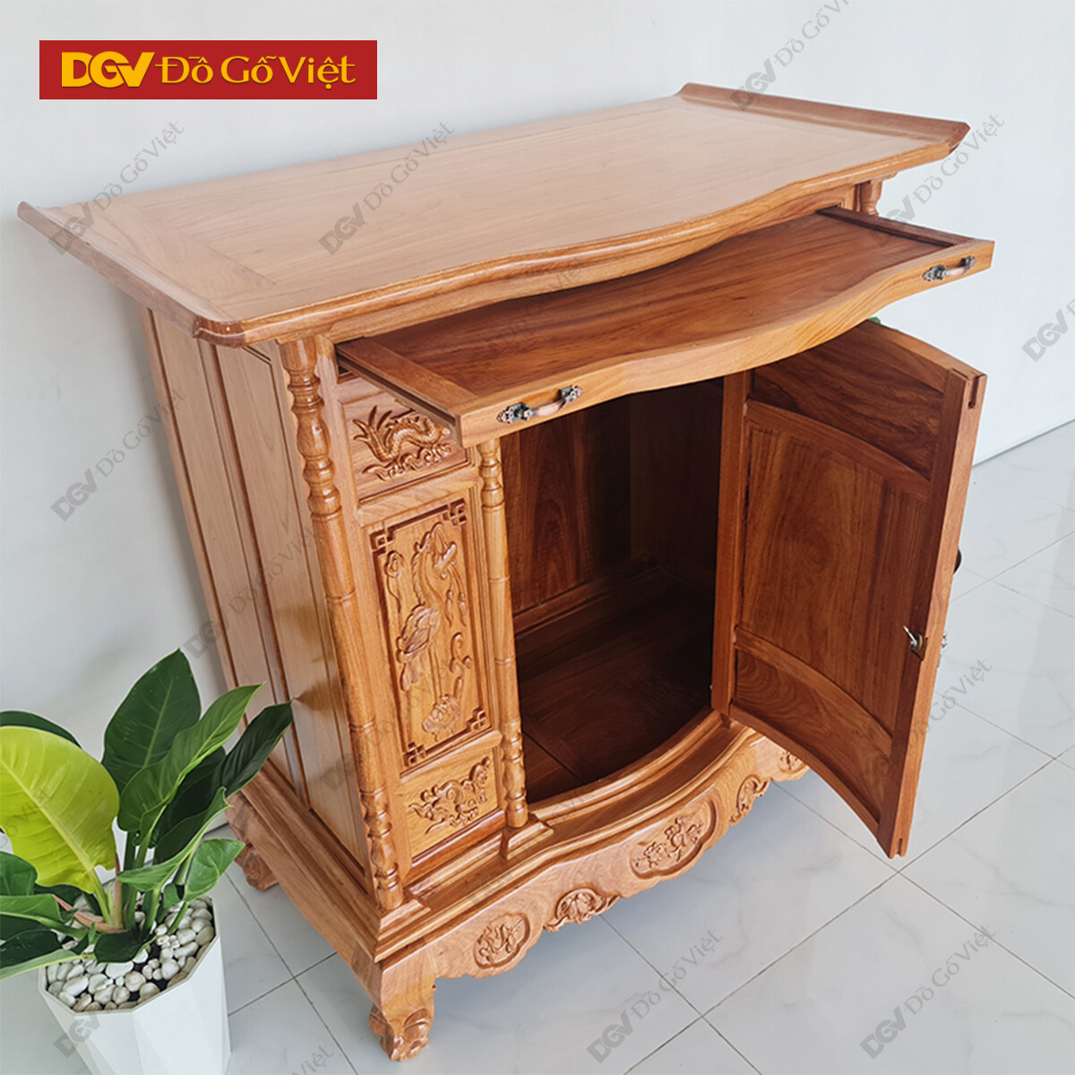 • Bụng thờ gỗ làm rỗng với diện tích không gian bên trong rộng rãi. Với chiều cao ~80cm có thể để vừa tất cả những loại đồ thờ như lư hương, đèn, nến, đĩa, ly…
