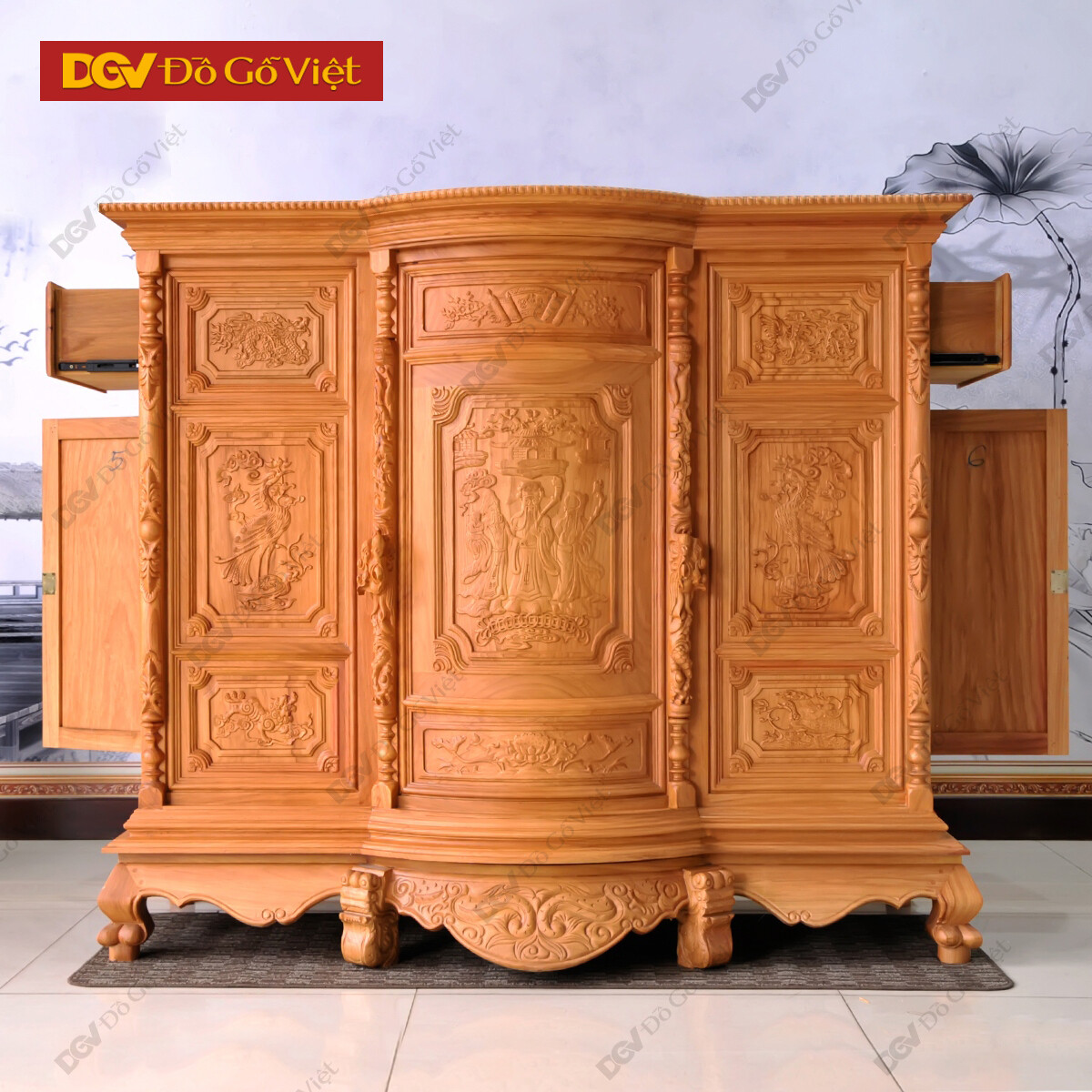 Tủ Thờ Phệ Gõ Đỏ Chạm Phúc Lộc Thọ Đẹp Giá Rẻ