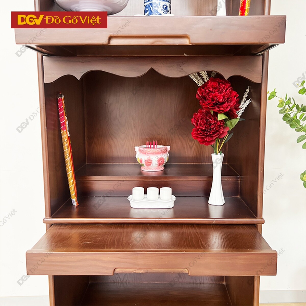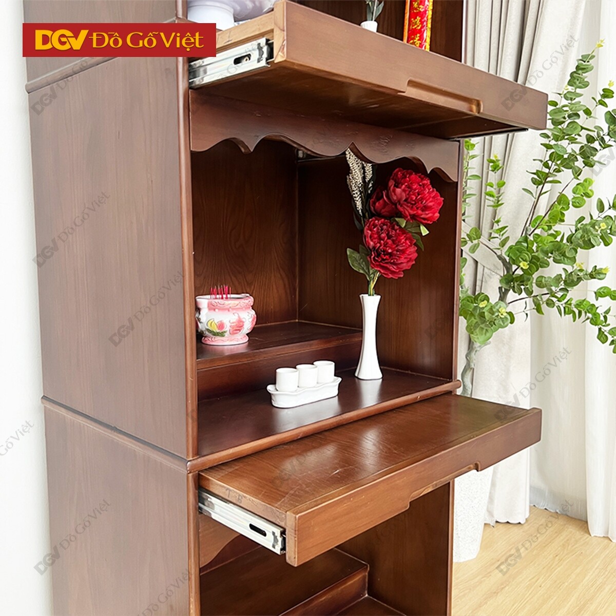 Tủ Thờ Gỗ Tự Nhiên Màu Nâu Thiết Kế Đa Hộc Kéo