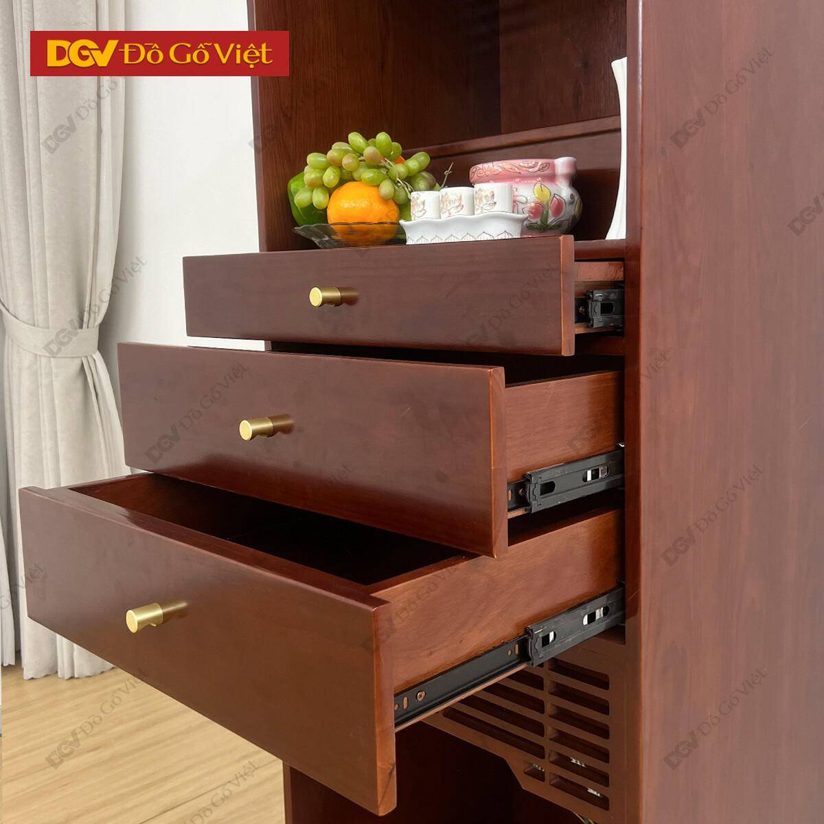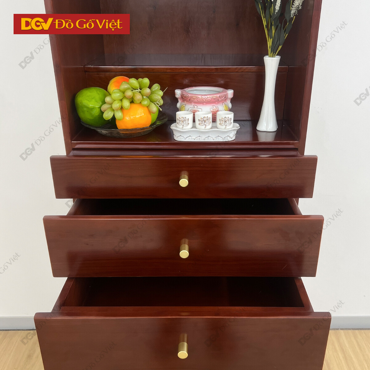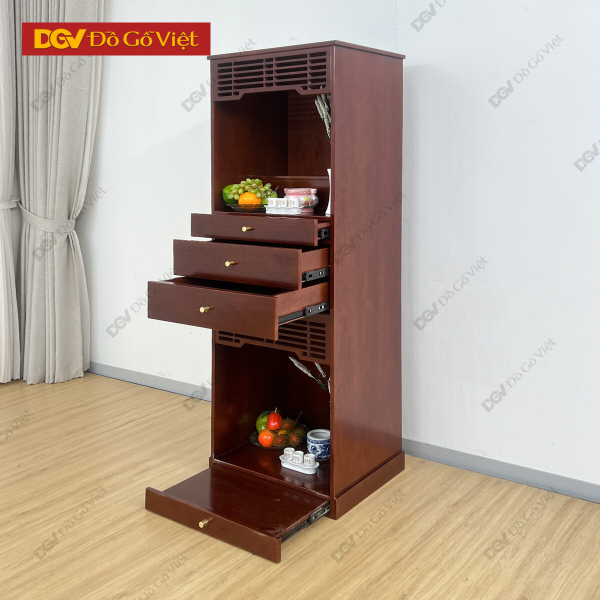 Tủ Thờ Gỗ Tự Nhiên Màu Nâu Thiết Kế Đa Hộc Kéo