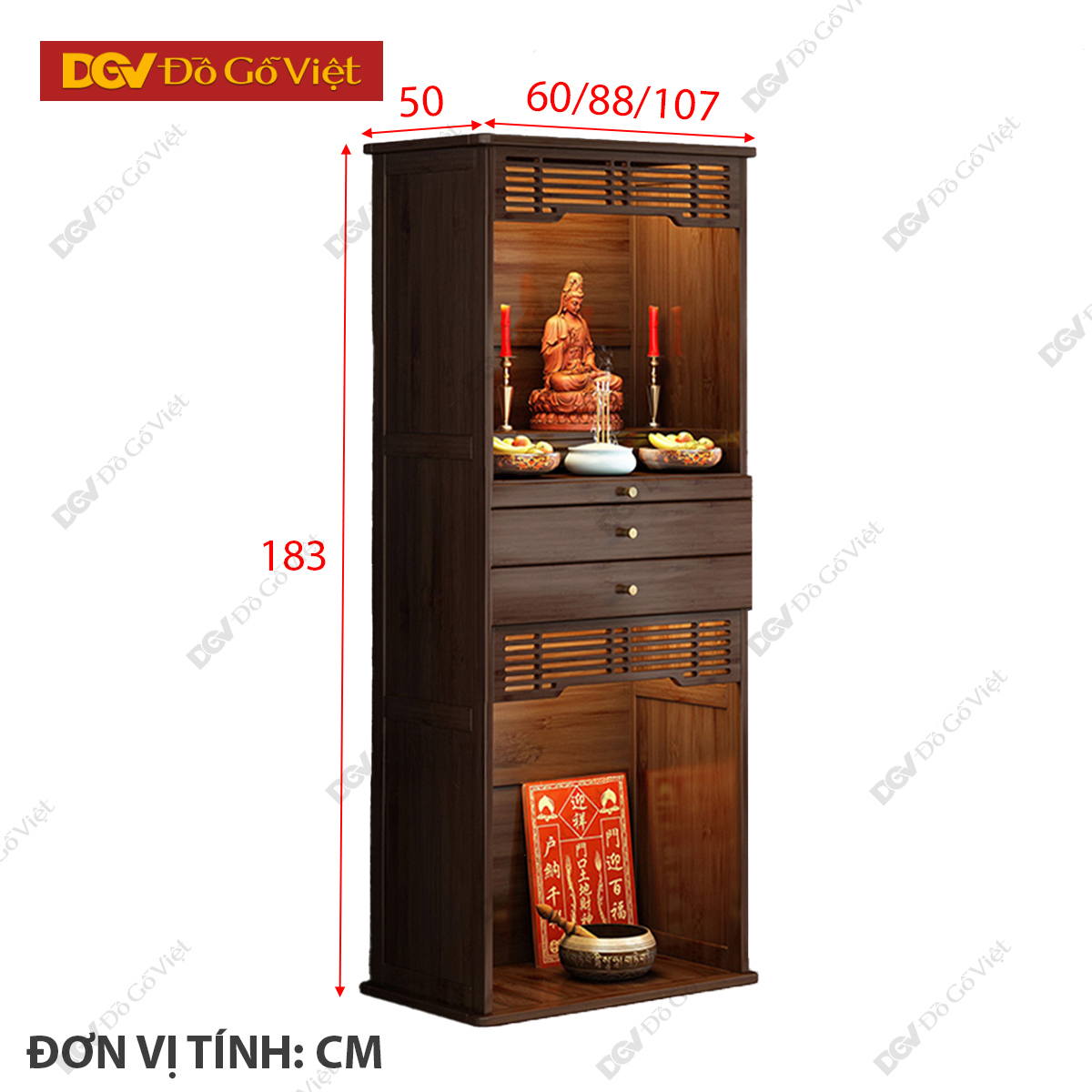 Tủ Thờ Phật Và Gia Tiên Khung Gỗ Chuẩn Lỗ Ban Phong Thủy